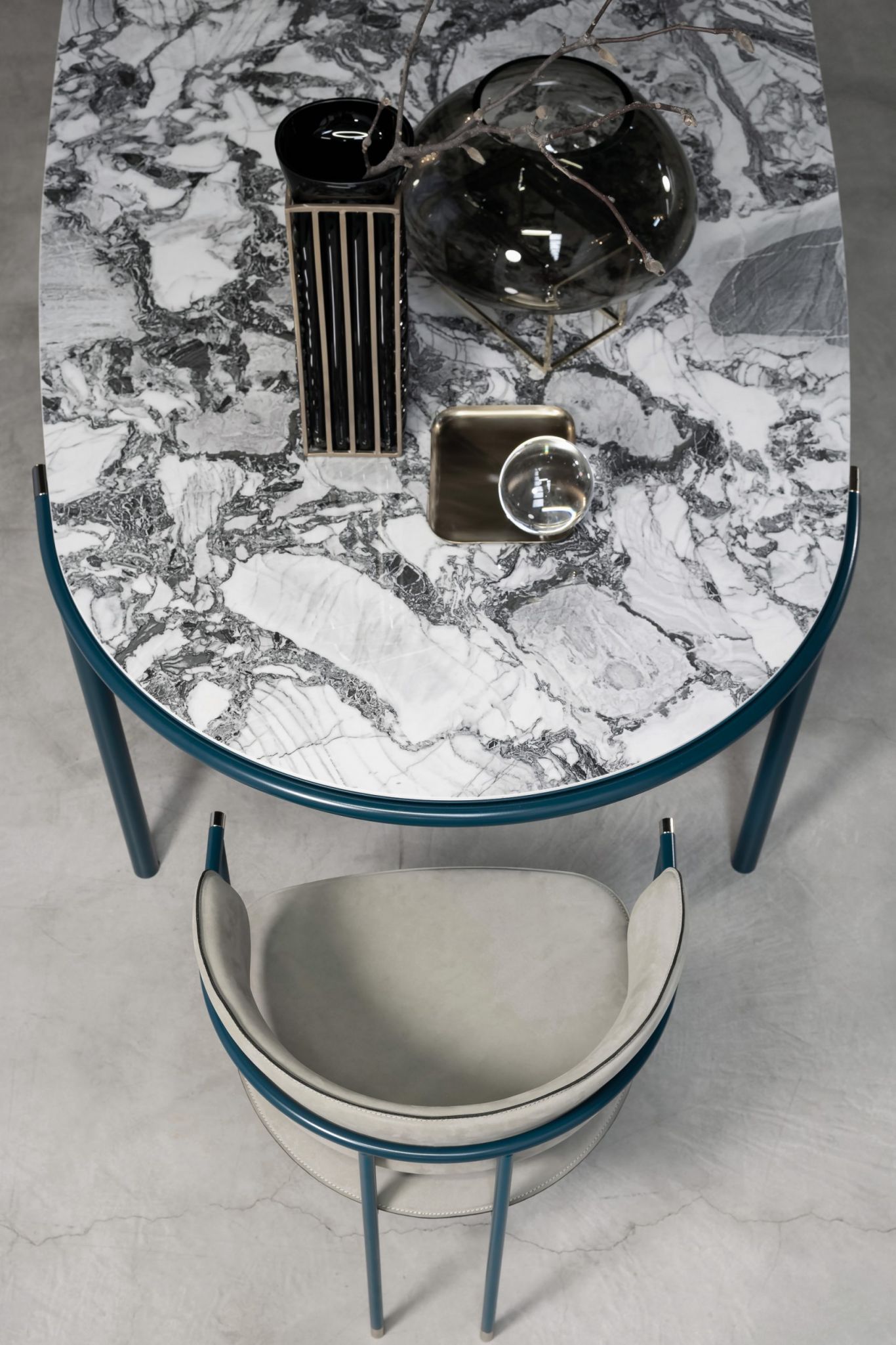 A poco a poco prende forma lo scenario che abbiamo immaginato per la nostra casa moderna, un luogo in cui le forme si assemblano per creare oggetti semplici, di quella semplicità che tipicamente nasce da profondi processi di ricerca. Oggetti lineari, che possano assolvere alla loro funzione ed allo stesso tempo definire una precisa, inequivocabile idea di stile. Telaio metallico, verniciato opaco in 7 colorazioni differenti. Top disponibile in 3 diverse finiture e terminali cromati nelle finiture Standard, Nero e Oro. Per nostra scelta, la materia del top, attraverso le venature del legno o le laccature opache o i disegni della ceramica, si rende finalmente protagonista e domina sulla forma, fino a rendere senza tempo qualsiasi scelta stilistica.