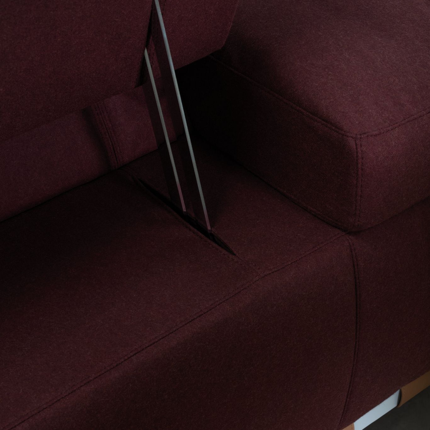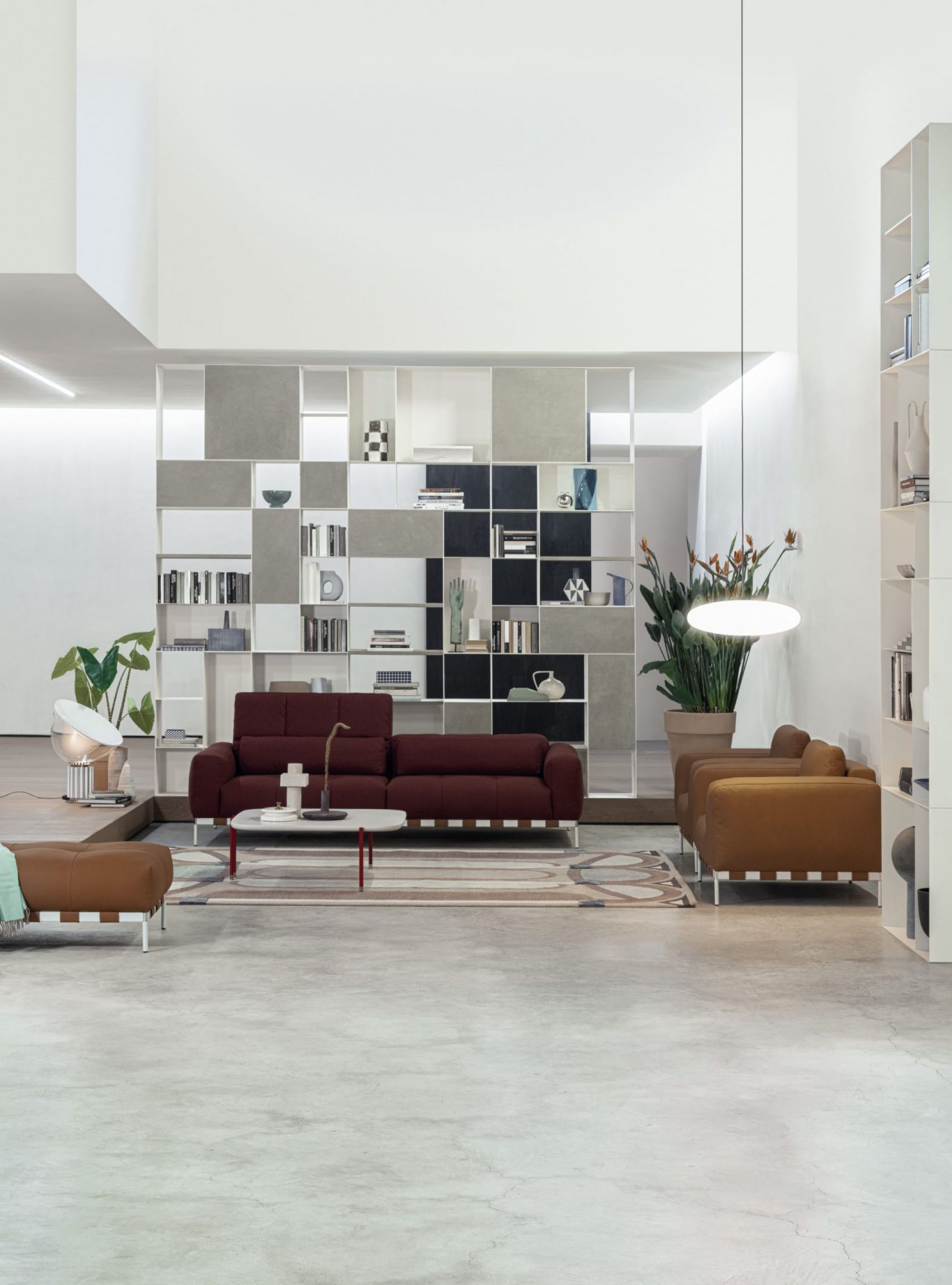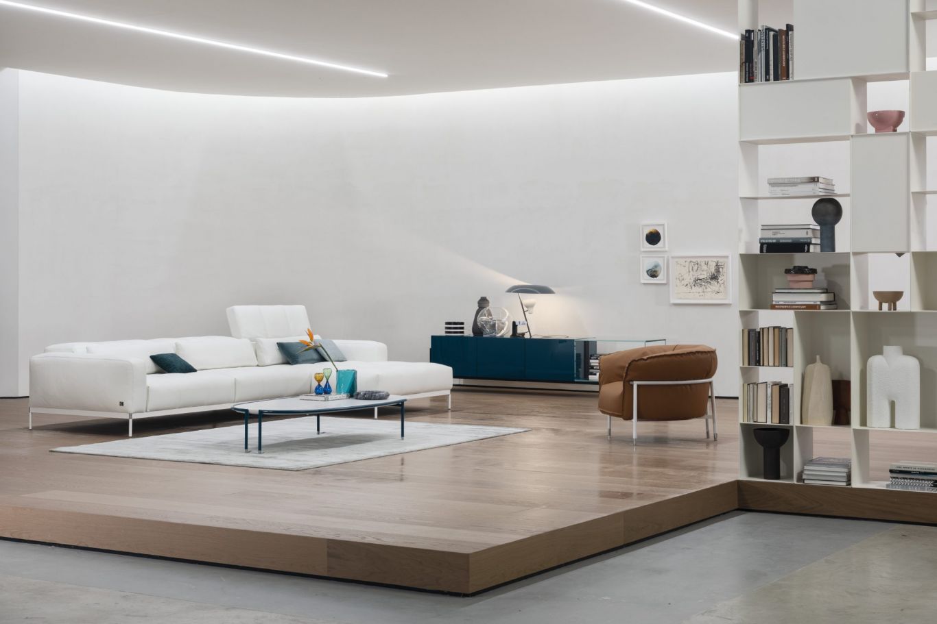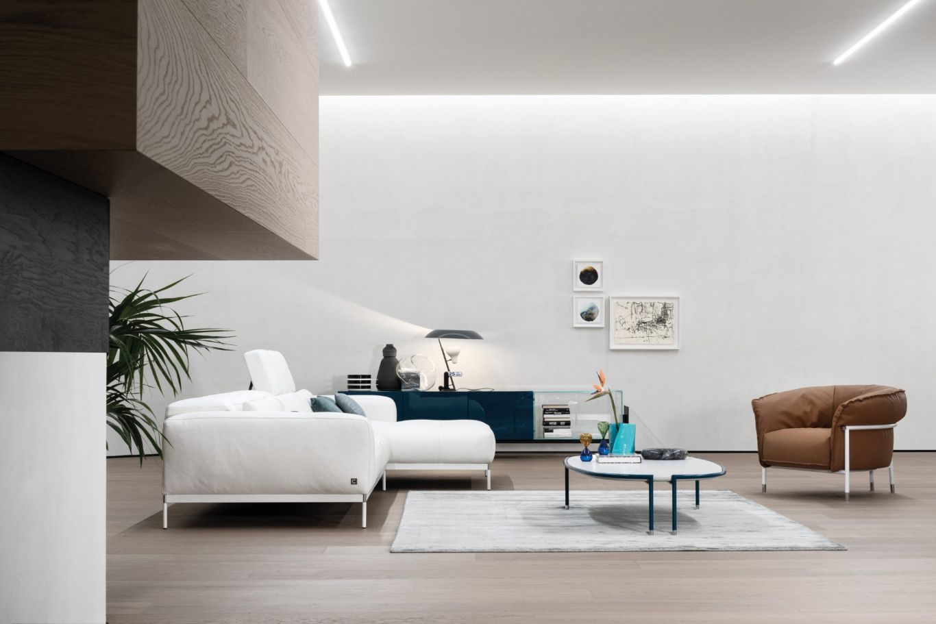 Divano elegante e moderno, con un’ampia gamma di elementi per comporre la configurazione che si desidera. Il meccanismo dello schienale consente di coniugare design e comfort. Il basamento è in metallo verniciato, la scelta possibile è tra 7 colori di RAL. Negli angoli del basamento c’è un angolo cromato, nelle tre finiture Nero, Lucido e Oro, che conferisce maggior prestigio alla composizione. Le cinghie in pelle della base, in tutti i colori disponibili del nostro campionario, creano un accattivante gioco di colore.