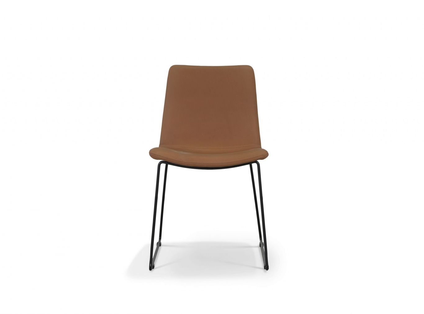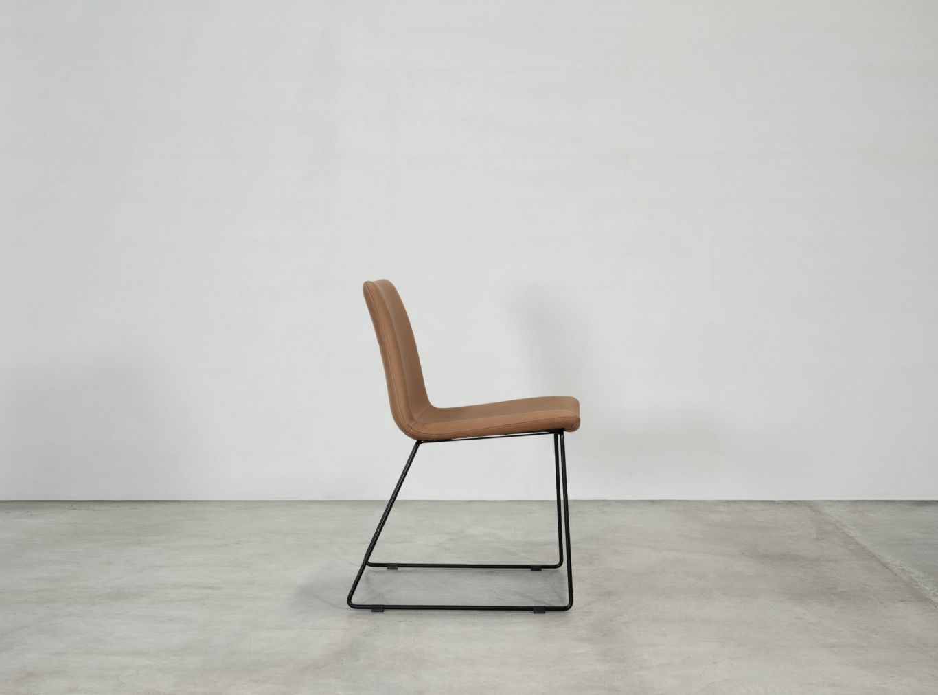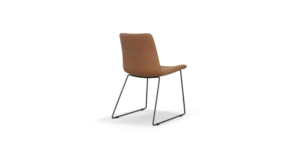 Un cammeo di minimalismo immortalato in una snella struttura tubolare di metallo che, nella sua leggerezza, rende protagonista assoluta della scena la confortevole seduta che la sovrasta. Struttura in multistrato post formato con imbottitura in due densità di poliuretano espanso. Piedi in tubolare metallico verniciato opaco nero o bianco.