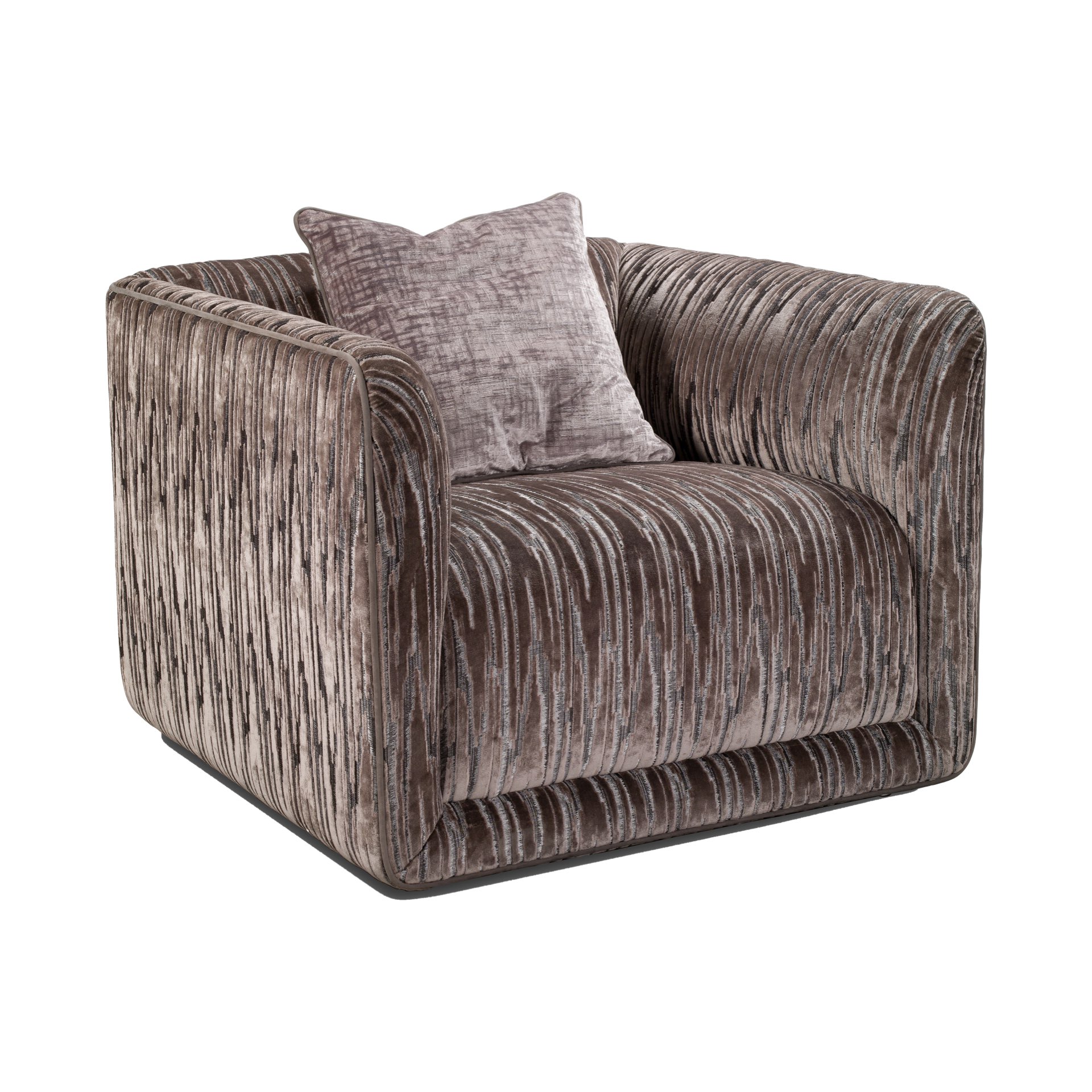 Struttura in legno di pioppo. Rivestimento in pelle o tessuto non sfoderabile. Imbottitura in poliuretano espanso. Schienale e braccioli sagomati.