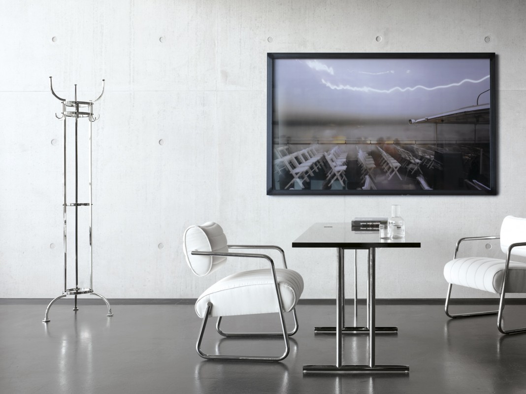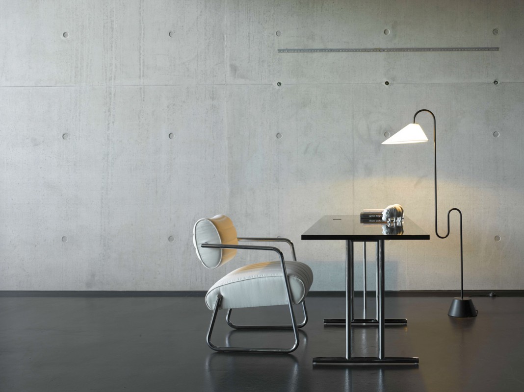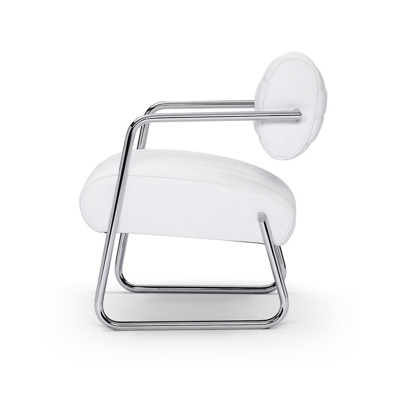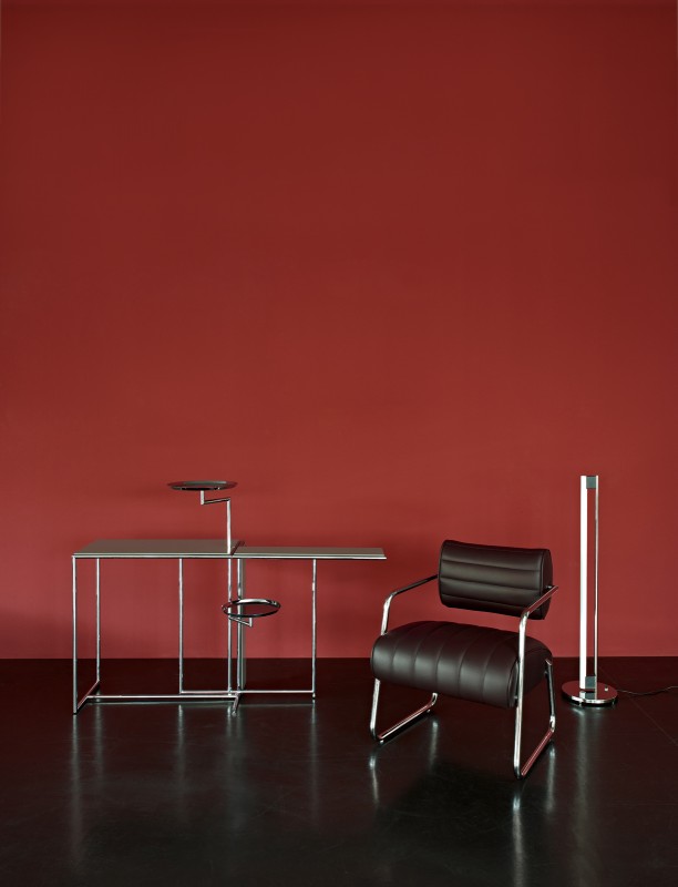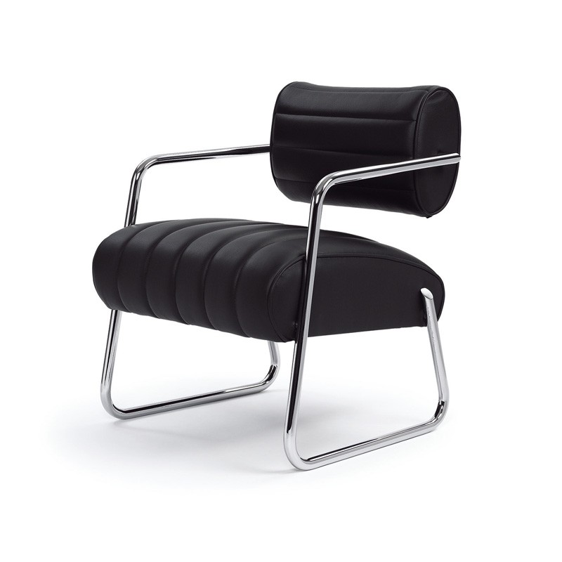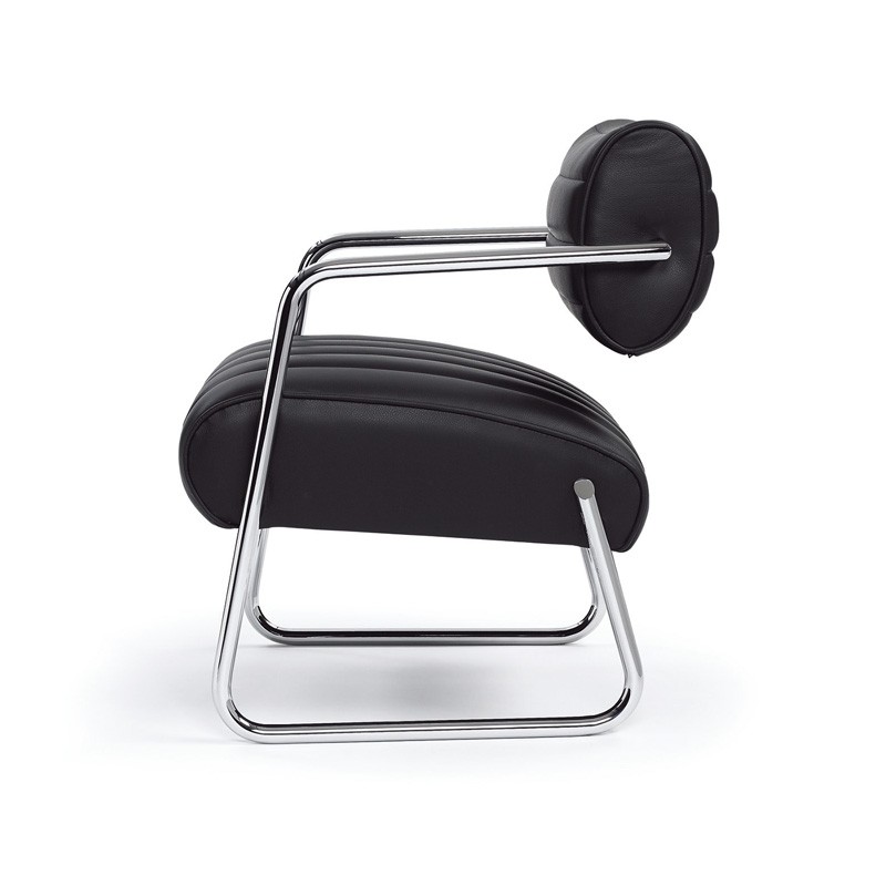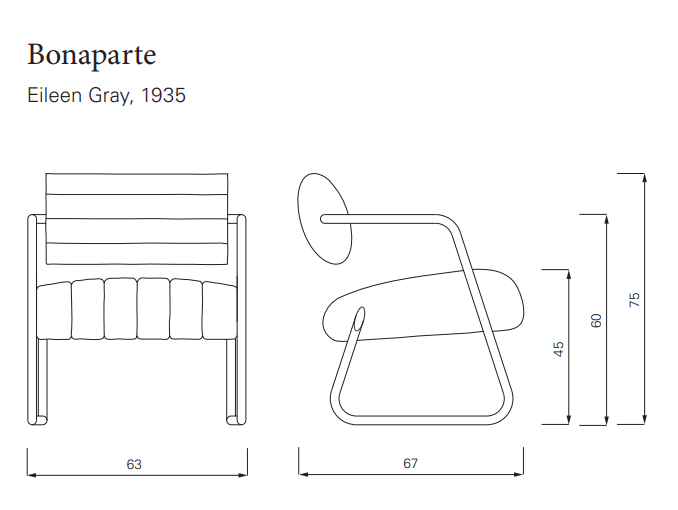 Bonaparte is one of the seldom cases in which the luxurious comfort of an upholstered chair has been successfully united with a tubular steel construction. The result communicates both ease and convenience. Actually conceived as a piece for drawing rooms, Eileen Gray found Bonaparte so pleasant that she used it for decades as her desk chair in her Paris home at Rue Bonaparte.