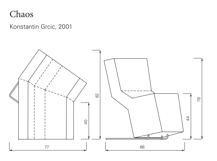 When a highly individual minimalist like Konstantin Grcic designs his first upholstered furniture, the result is bound to be extraordinary. With his Chaos chair, he has stretched the boundaries of many conventions and nonetheless, or perhaps even because of this, managed to create the perfect seat: narrow in profile, opulent in the front and rear view, and uninhibitedly ?cool? in effect. Chaos is a magical throne which ennobles everyday situations – sitting, waiting, observing – and gives them the aura of something special. A special seat for special places.