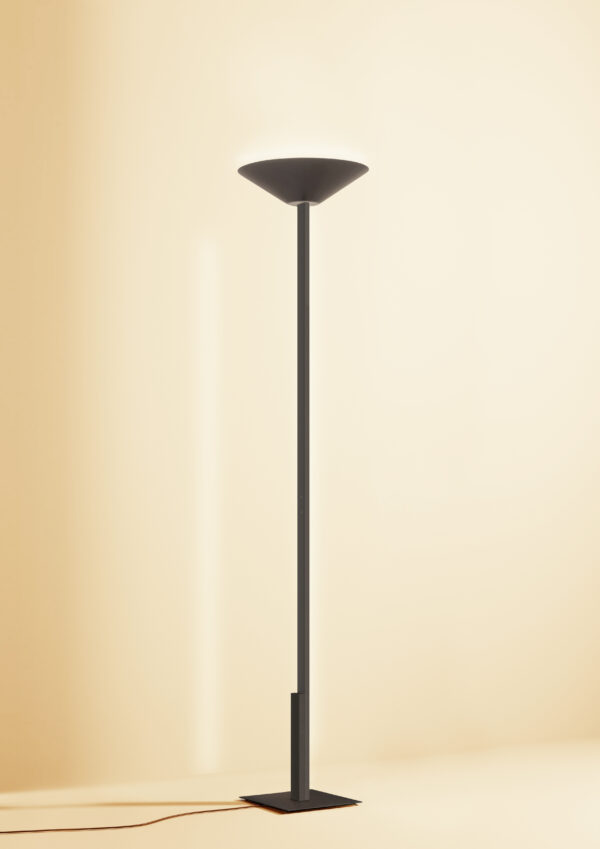 Oltre alle versioni Floor e Long, Fly Torch prevede una doppia emissione luminosa, sopra e dietro, indiretta. La luce può essere dimmerata grazie al doppio controllo touch laterale a bordo.