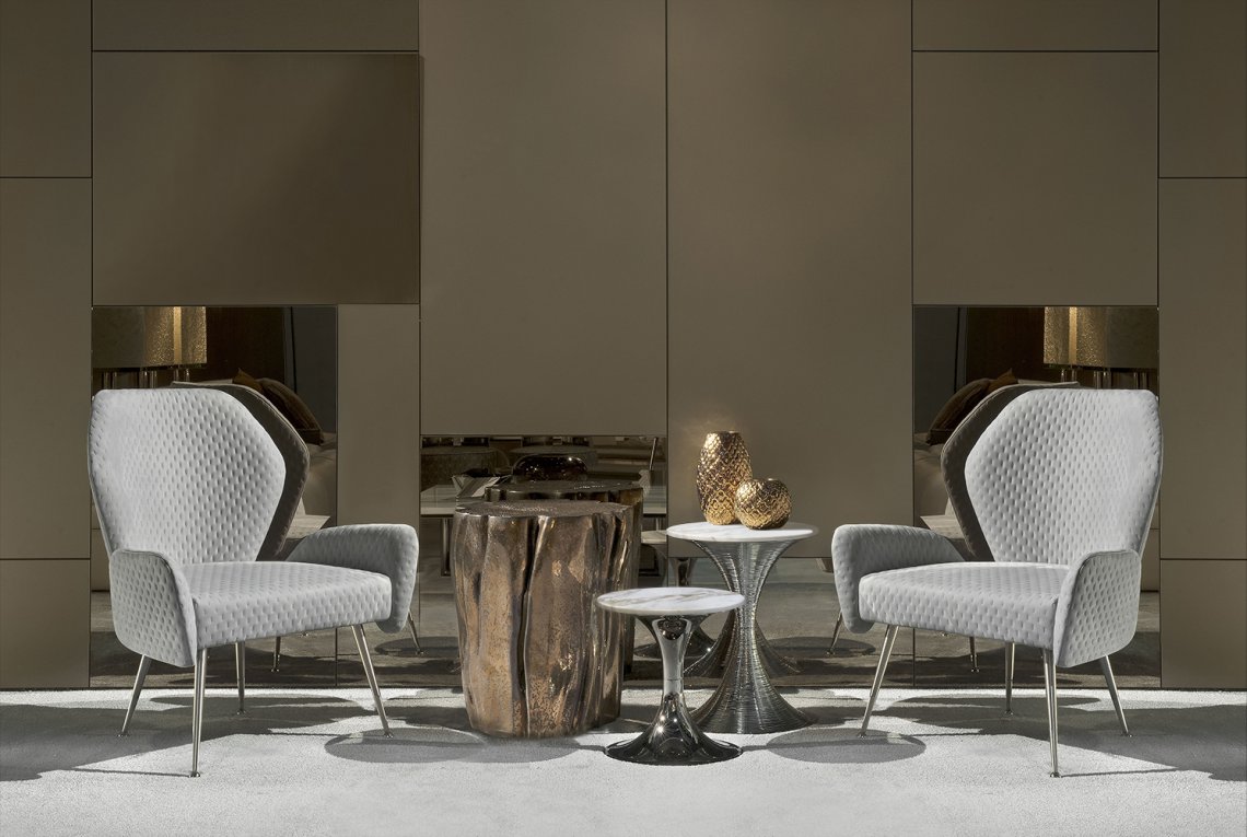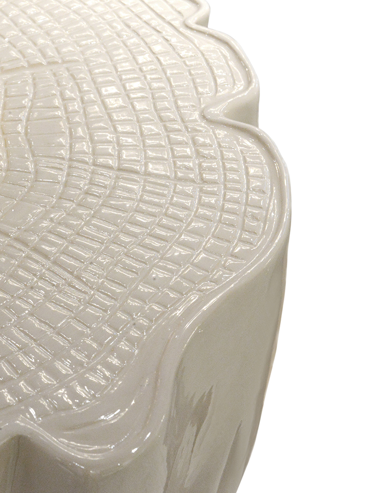 Side table Dafne looks like a sculpture that recalls some shapes of natural world. The top is engraved like a tree section while the external base is decorated as if it was a trunk. The design of this item, completely made of pottery, is like an artwork able to enhance a precious touch to contemporary environments.