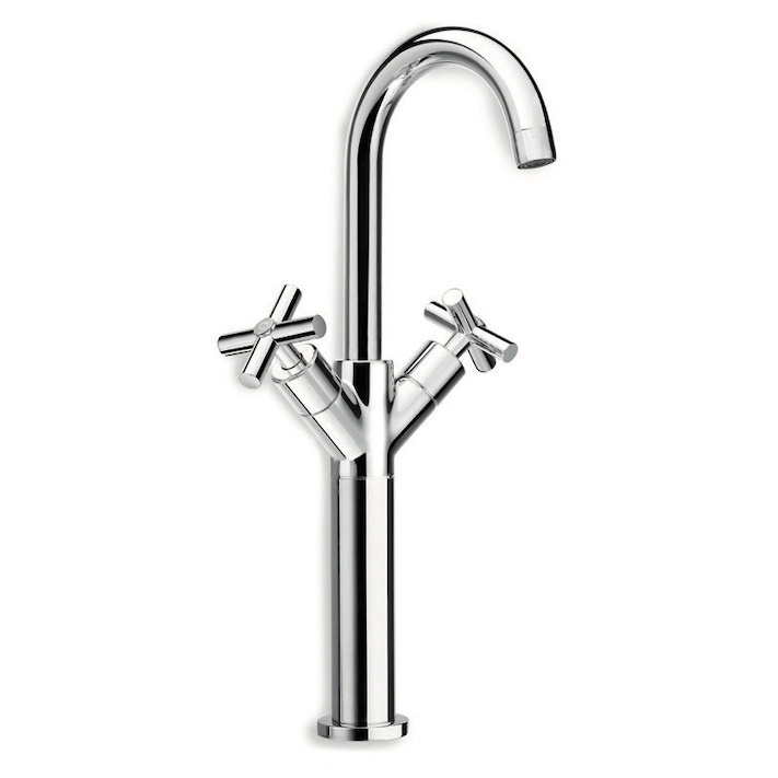 Dual-control single-hole deck-mounted Tall Washbasin mixer, with mechanical mixing and 1" 1/4 U&D* drain