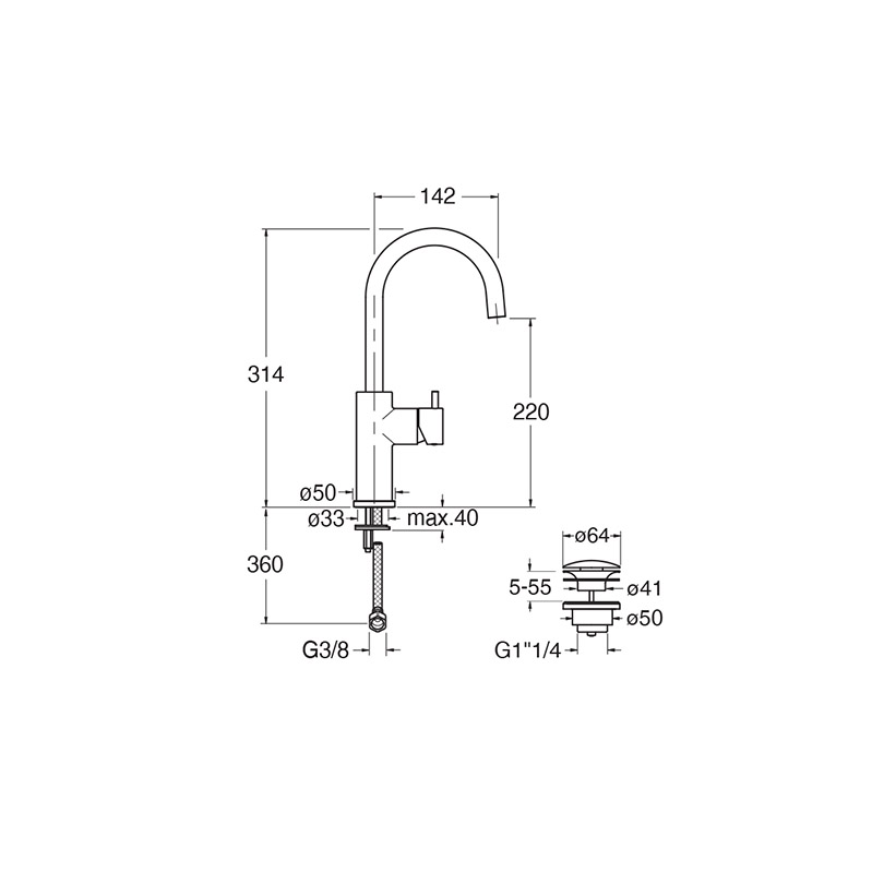 Single-control single-hole deck-mounted Regular Washbasin mixer, with mechanical side mixing and 1" 1/4 U&D* drain