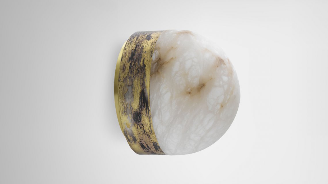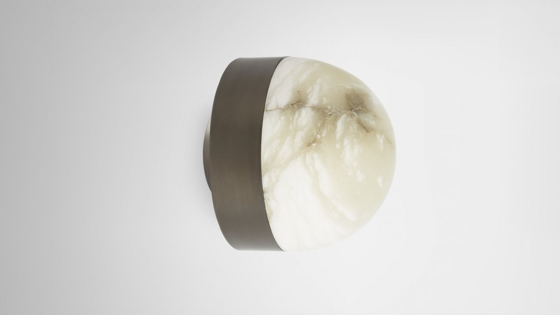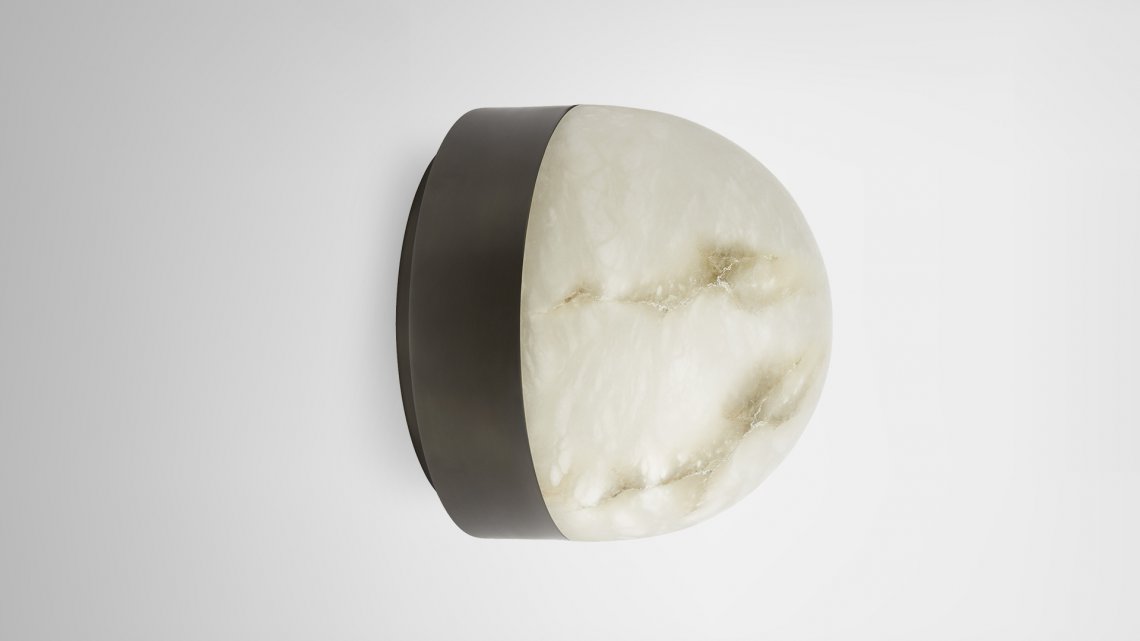 Designed by Michael Verheyden, the Lucid collection was inspired by Parisien Brasseries and snowdomes. Both functional and sculptural the light celebrates premium materials, honed alabaster, satin brass together with silvered brass finishes using oxidised silvered brass. CTO worked with a small silversmith to experiment with new finishes and discovered a textured finish using brass, silver and oxidised silver.