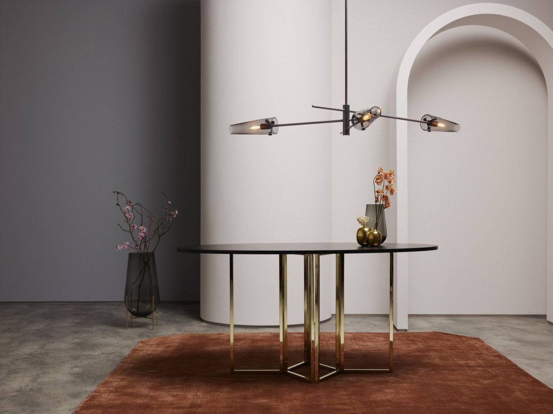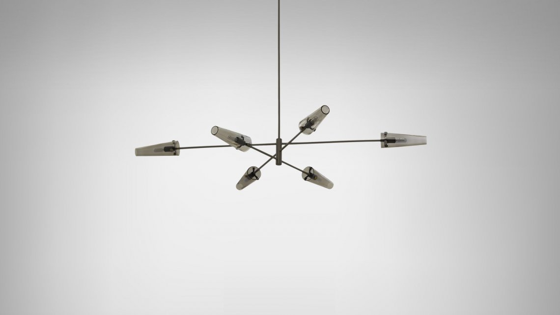 Evocative of antique streetlamps, AXIS is a stunning, contemporary pendant light with a retro twist. Featuring conical smoked glass shades suspended from a satin brass or bronze frame, AXIS finds equilibrium with a perfectly balanced form. The linear profile of the large pendant works effortlessly over long rectangular tables and kitchen islands. For more rounded areas, such as above a circular dining or coffee table, the three arms of the smaller version are positioned and proportioned beautifully. Both sizes of the AXIS Pendant are fitted to the ceiling with a brass ceiling rose and drop rod that can be made to measure to suit your space.