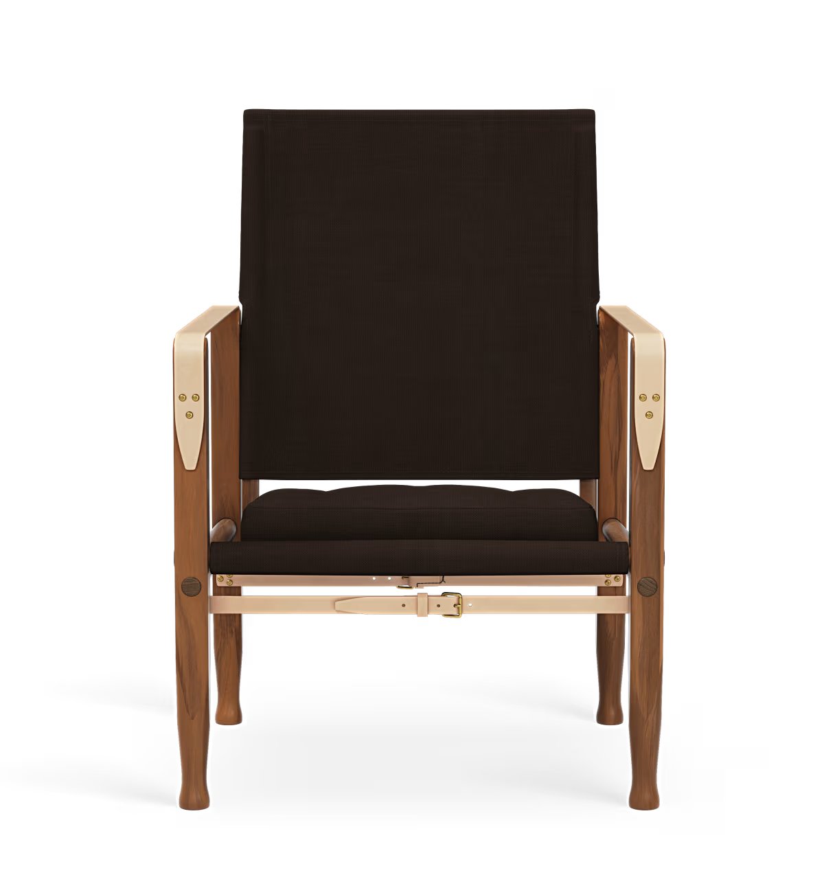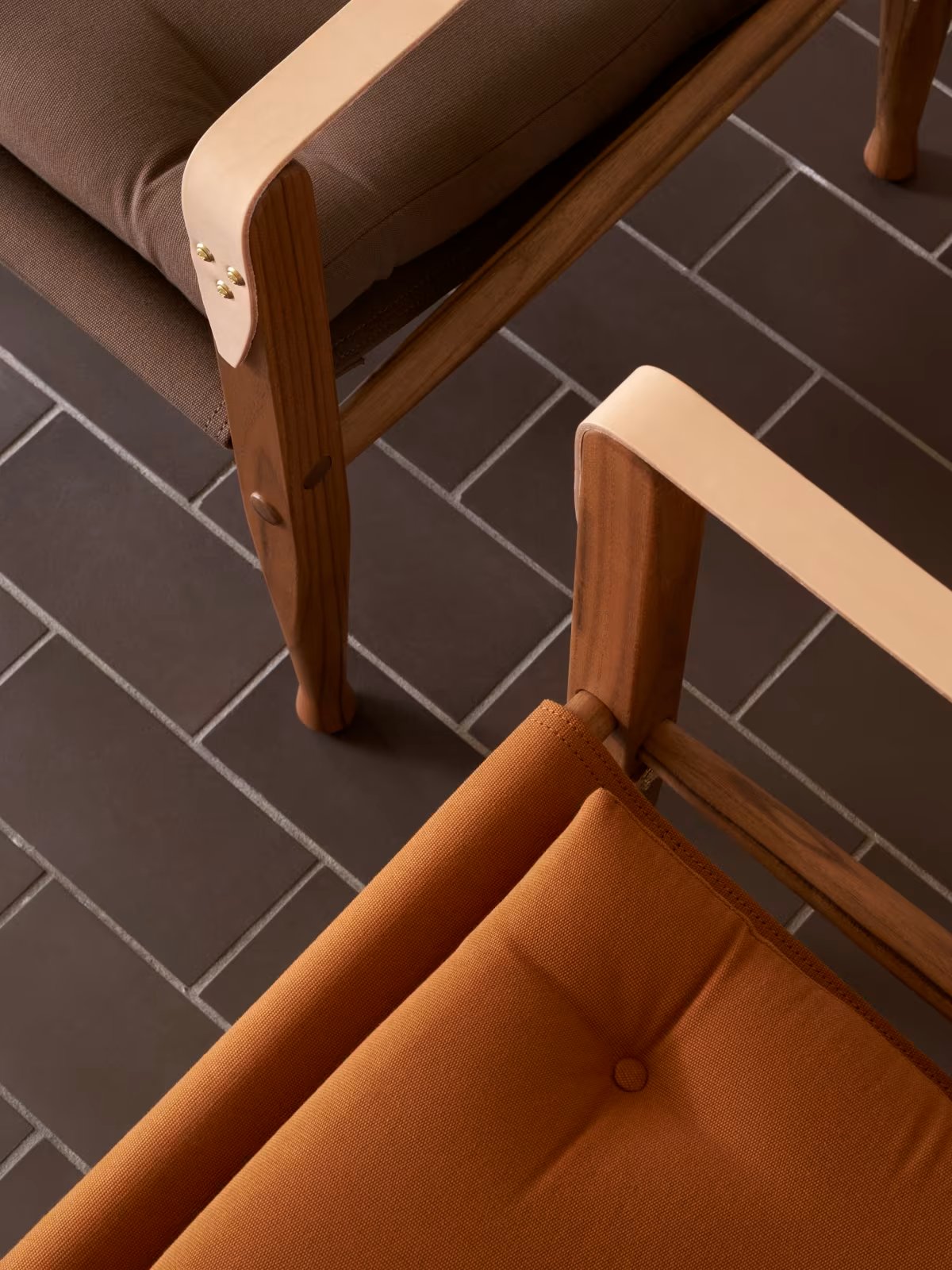 his special edition of the Safari Chair by Kaare Klint features a heavy canvas fabric available in three warm and earthy colours. Merged with soft saddle leather detailing and a vibrant oiled teak frame, this edition offers a new look to Klint’s masterpiece.