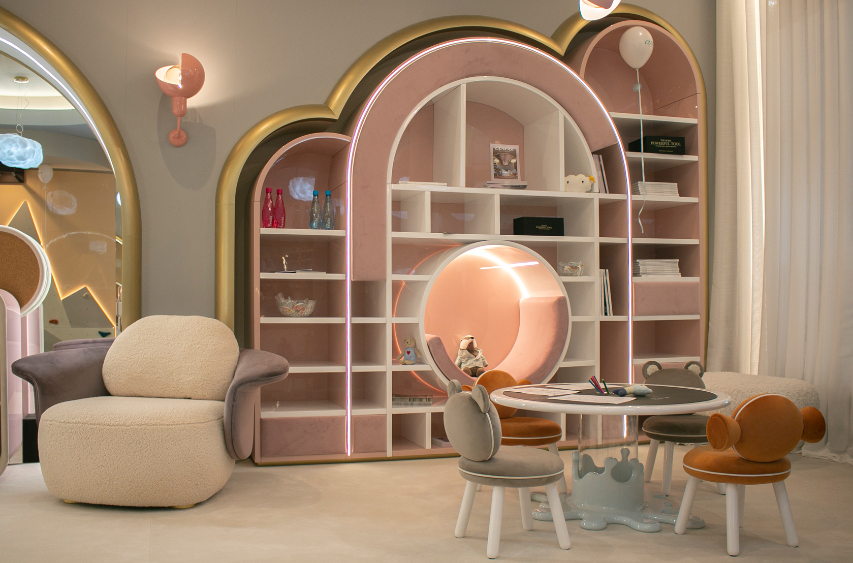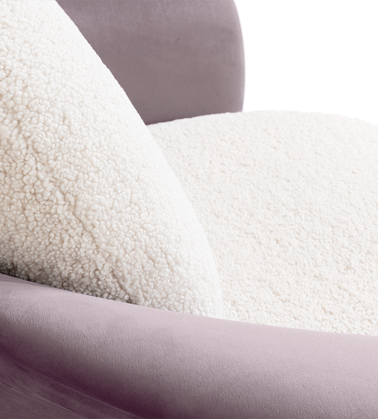 On the Isle of Lewis, the Callanish Standing Stones are one of Scotland's oldest and most magical monuments, and they inspired Merida's ring of stones in "Brave." Circu was inspired by this as well, and shaped this piece of upholstery to seem like rocks and natural formations. Lewis Armchair is a modern piece that employs fluidity to convey warmth and comfort by combining two very different fabrics: a soft boucle for the sitting and back, and a delicate velvet for the back frame. The golden plated feet provide a touch of elegance, as well as a sense of mystique and enchantment.