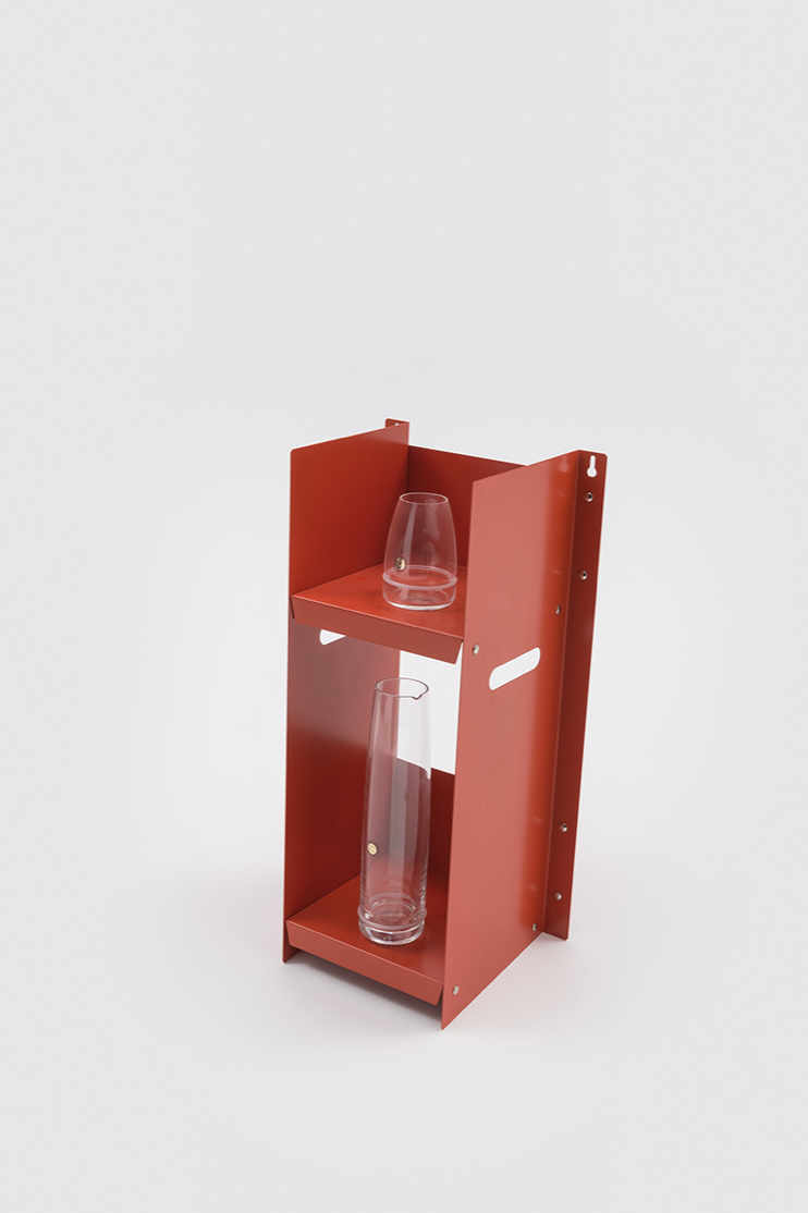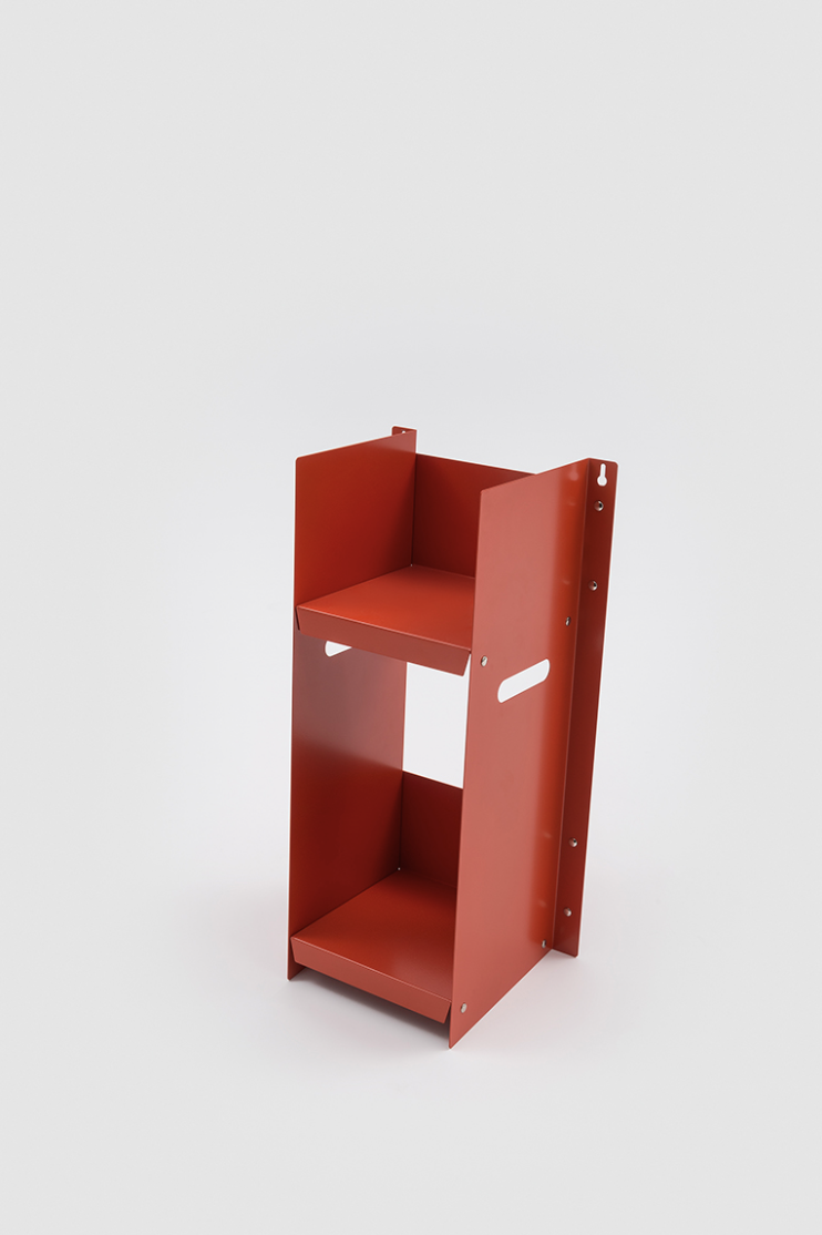Livorno is a small bookcase with two shelves made in powder-coated metal. The design of the piece is minimal and is characterized by the simplicity of the form and materials used.