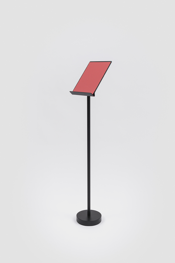 Bincan leggio is part of the Bincan collection, which was designed for the work place and can be adapted to any environment whether internal or external, public or private. The lectern is made in lacquered metal and can is available in three size: A3, A4 and A5.