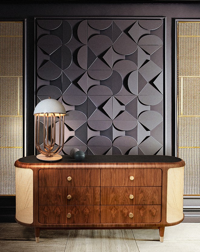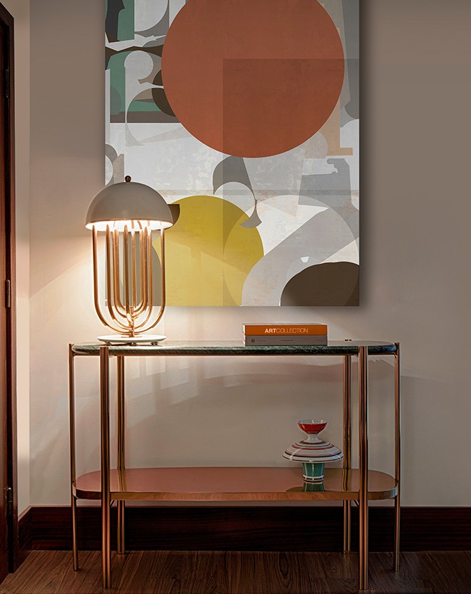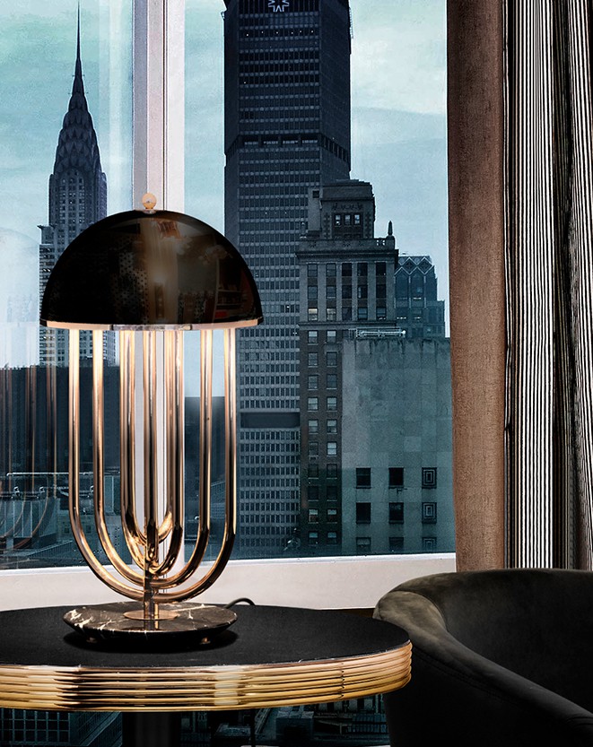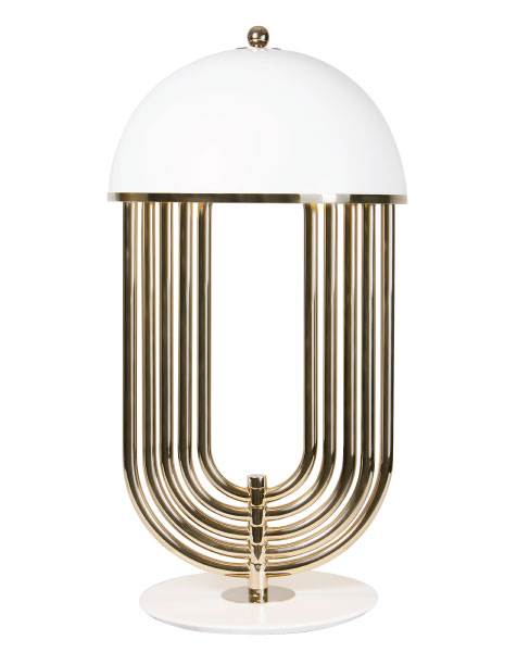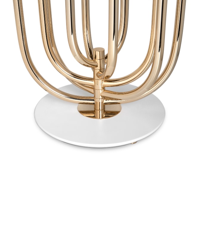 Turner art deco table lamp was inspired by the electrifying and memorable dance moves of the iconic pop singer. Tuner is a large table lamp handmade in brass and aluminum. The body has a gold plated finish, while the shade was lacquered a black matte on the outside and a gold powder paint on the inside, so as not to create an uncomfortable glaze for the user. Its five movable arcs can be rotated into the desired position, which gives this black table lamp a sense of fun, and allows you to create the best composition to fit your modern home decor. A versatile piece, that can be used in almost any room of your house, this brass desk lamp looks its best when placed in a modern home office or art deco inspired living room.