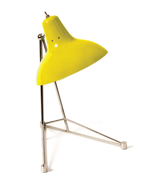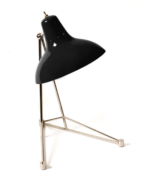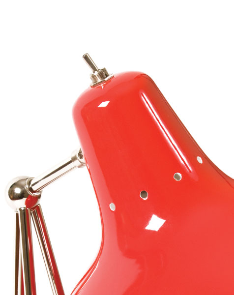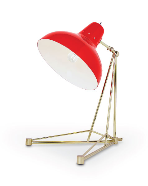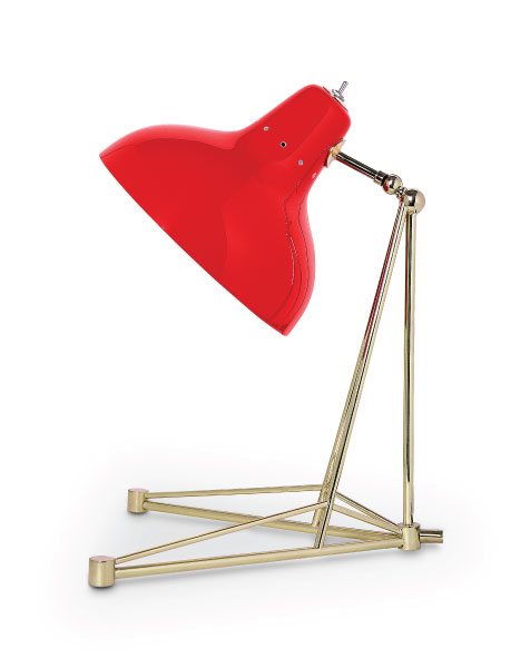 Diana is a vintage table lamp inspired by some of the greatest design classics of the mid-century era. It is a handmade lamp built with materials such as brass and aluminum. Brass was used on the body, whilst aluminum was chosen for the shade. The aluminum shade is lacquered a glossy red on the outside and matte white on the inside, while for the body a nickel-plated finish was chosen. However, both these colors and finishes can be customized according to your needs. This small lamp is easily the perfect reading light, having a movable and adjustable shade, that casts light to where it is needed. It best fits more minimalist or industrial environments. The perfect study table lamp.
