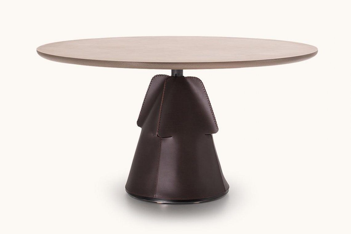 與Mario Ferrarini合作設計的DS-615桌子系列尤以其皮革制成的圓錐形桌腿令人印象深刻。 桌腿采用高品質DS-ARTISANO皮革。該種de Sede皮革,以超強的可塑性能而得名。四塊皮革拼成圓錐形由手工縫制而成。 隱藏在皮革下的金屬結構提供穩定的支撐。