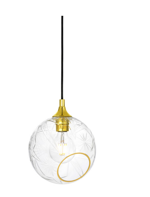 The Ballroom pendant is simple and excellent. The classic shape combined with the gold plated suspension makes this lamp timeless. The glass dome is mouthblown and faceted. The edge of the hole is gold.