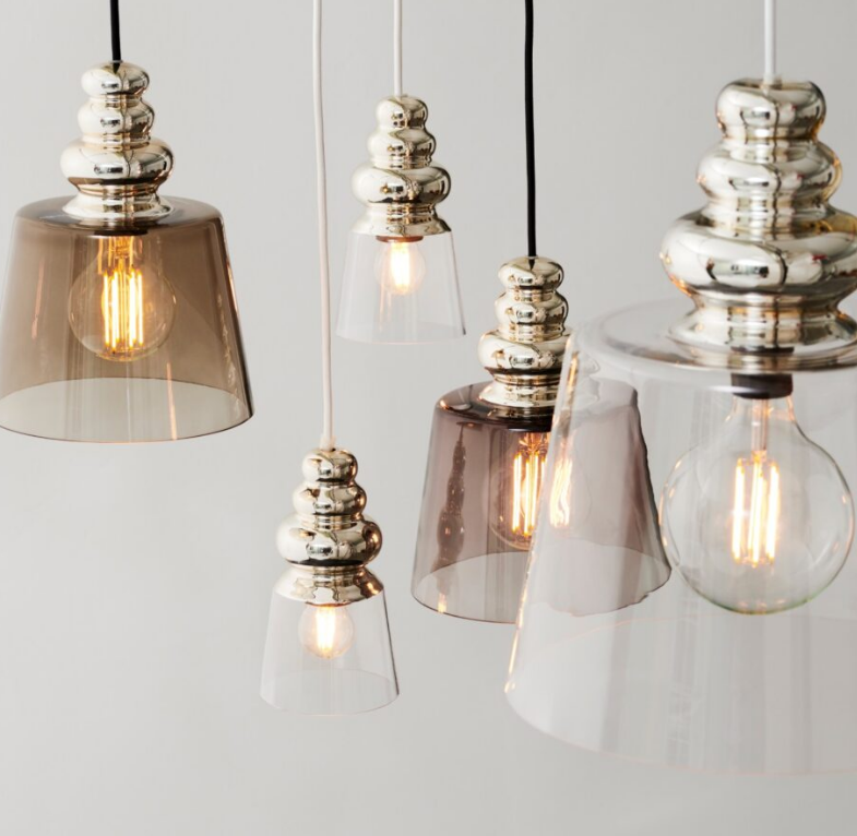 The Pollish pendant is made of one piece of mouth blown glass with a hand painted silver top. The classic shaped lampshade combined with the voluminous silver top makes this lamp special. The glass pendant will decorate any room beautifully and works great alone or in clusters of different colours or sizes. The Pollish Collection is available in three sizes and two colour variations.