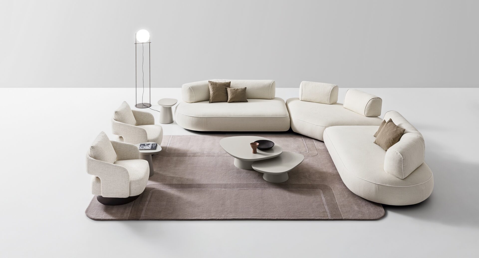 Dalla libertà di composizione e dal desiderio di informalità nasce un divano che è un arcipelago di forme arrotondate. Isole come sedute accoglienti e con morbidi cuscini da disporre a piacere, tra cui uno schienale ad angolo variabile che caratterizza l’insieme e si adatta ai corpi e allo spazio.