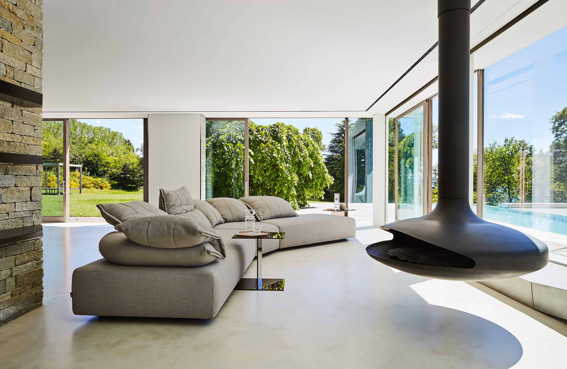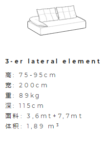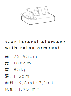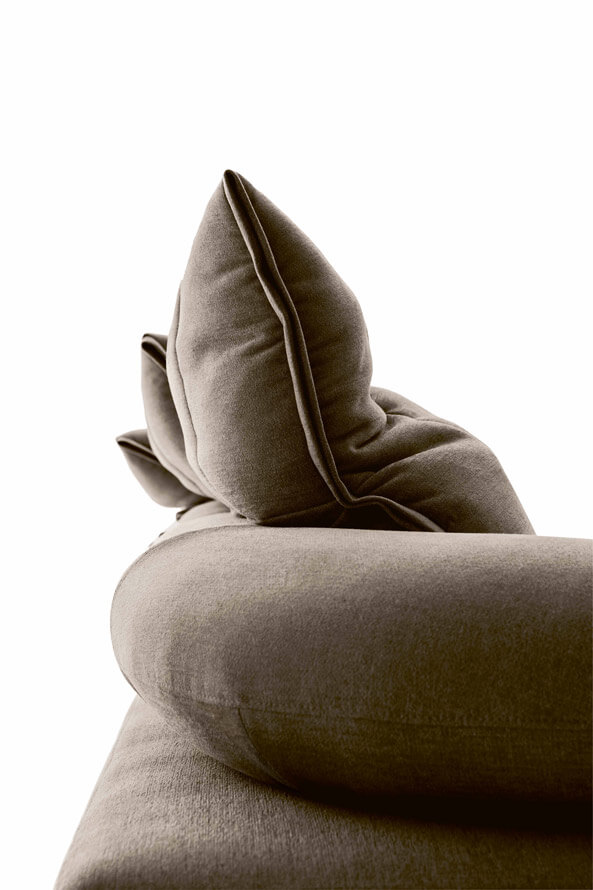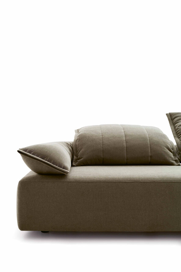 坐墊迭加及一張沙發床。邊緣細節提升了織物的視覺感及觸覺感。靜音機械裝置可以升起所有坐墊便于完全放松身體,不對稱模塊肯定了設計的當代視覺感,可以放置于超大空間內及客廳中心。