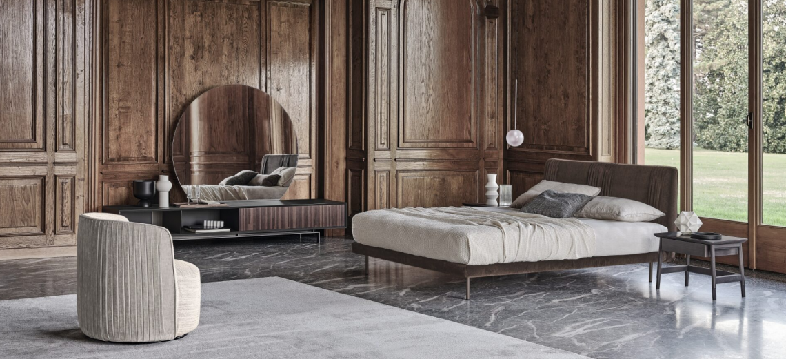 Chloè Luxury è un letto poco invasivo eppure caratterizzato da un segno riconoscibile anche nelle omonime poltroncine: la plisettatura diventa così l’elemento distinitivo della camera da letto, segno di romanticismo e classe tipicamente femminile.