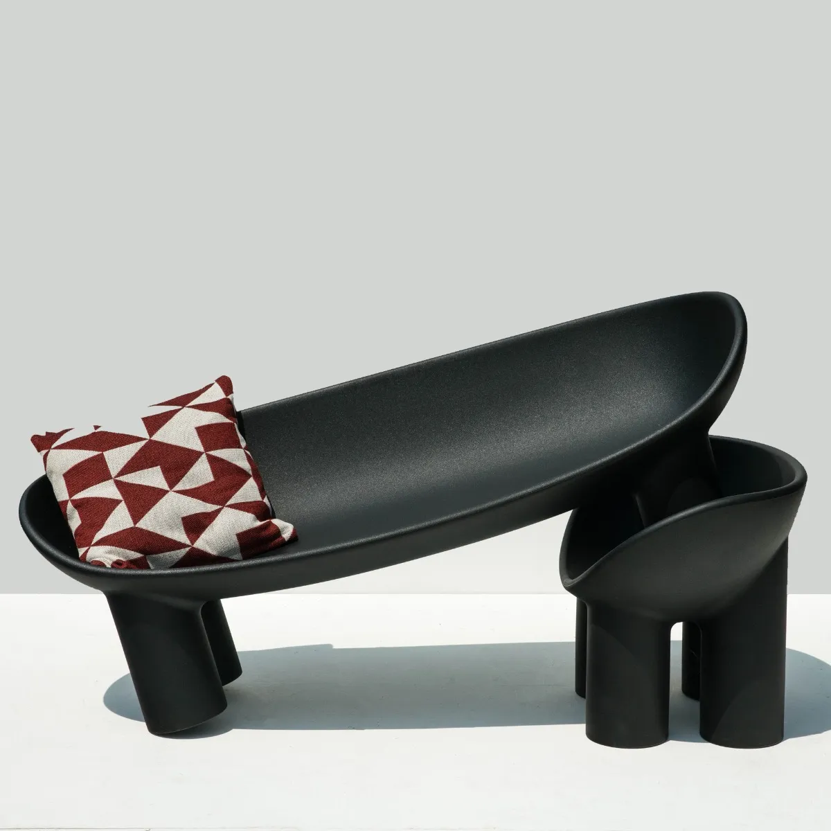 Polyethylene monobloc sofa made by rotational molding for both outdoor and indoor use.? Available in the following colors: ochre, red brick, peat, charcoal, concrete, flesh.? It is available with seat / back cushions made of inside part in polyester fiber interior and a non-removable fabric cover.