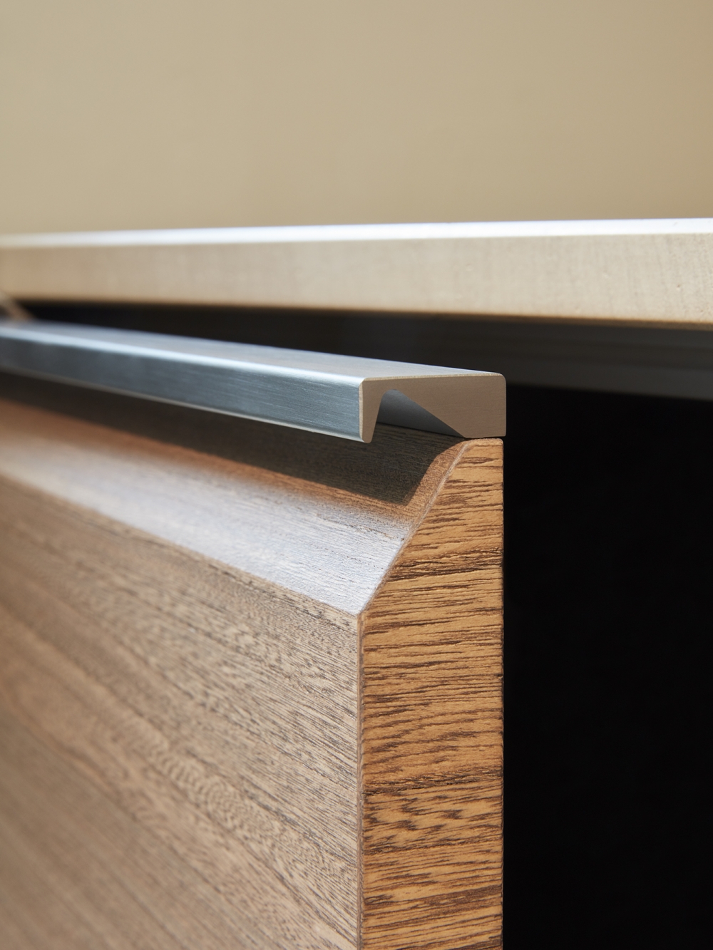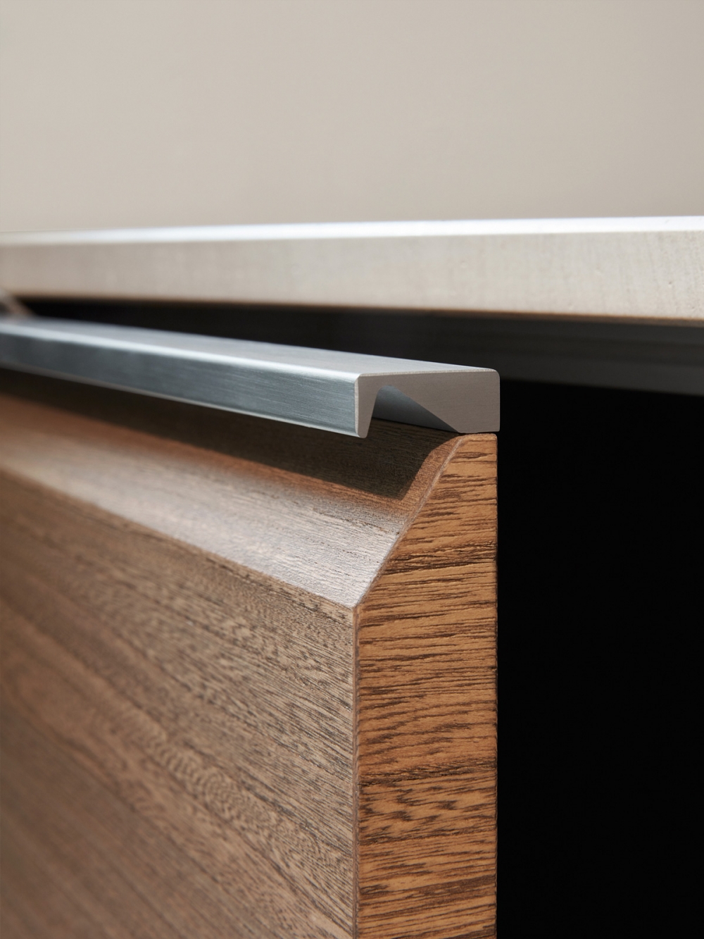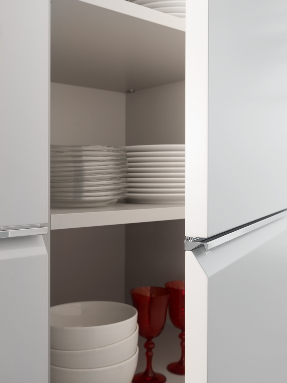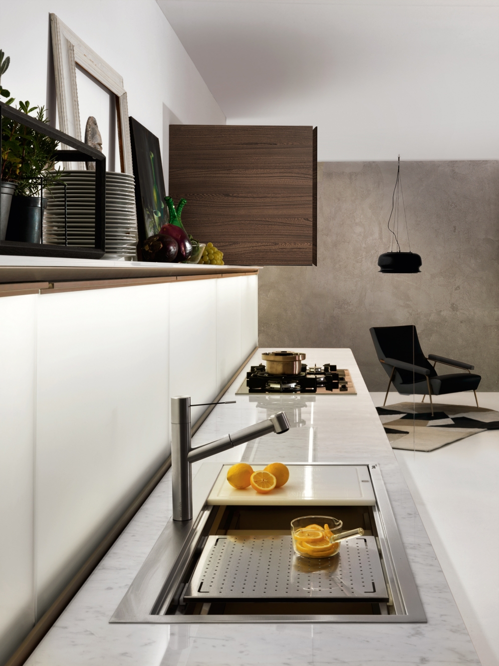 抽屜、柜門和懸拱是遠遠不夠的。 這就需要使用一種特殊的后方裝置,在懸拱和作業面之間形成可以放入Dada專利機制的一個空間以及滑動式隱藏的玻璃材料。 LED燈和電源插座有助于調節依靠核心科技為Trim系列安裝的背面。