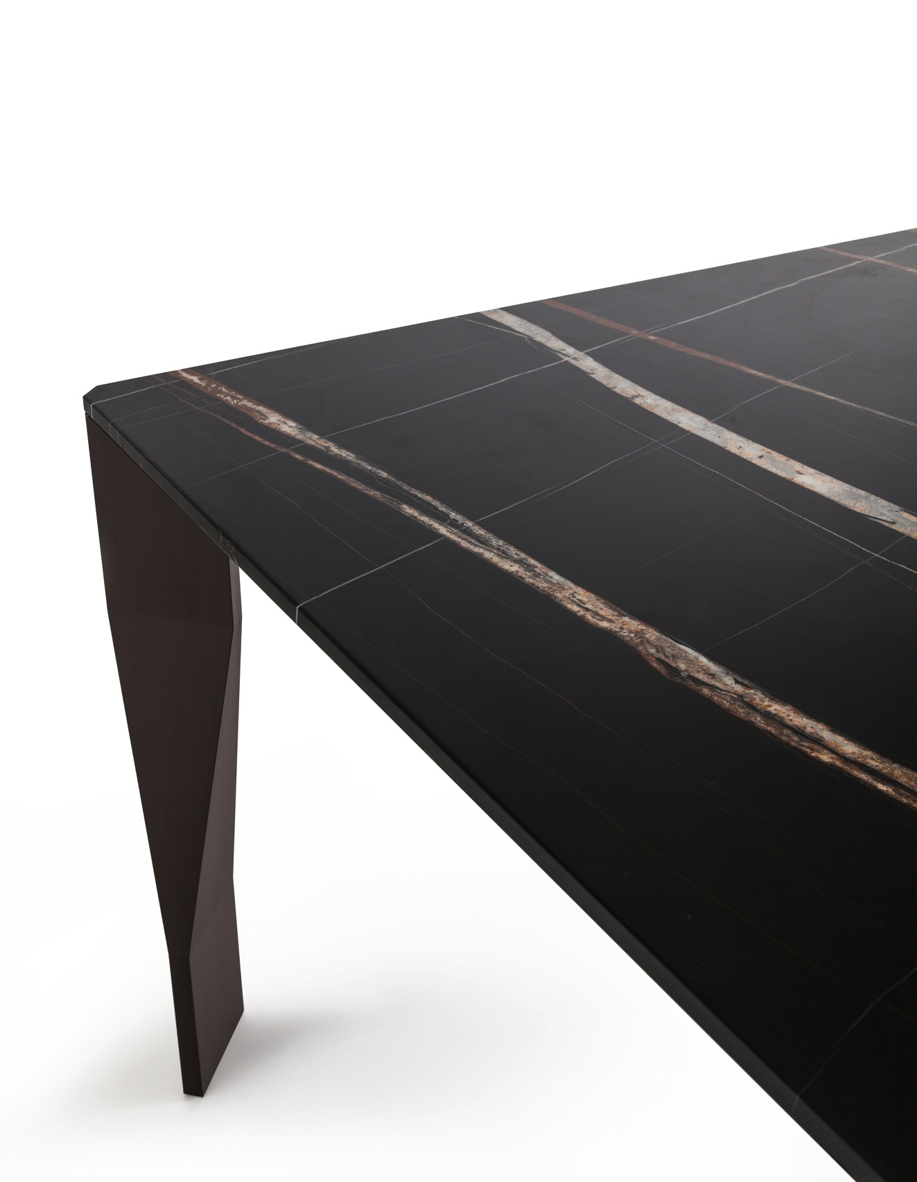 一個帶有折疊形狀桌腿的餐桌系列,像精致的折紙手工工藝品。桌腿由輕質的鋁箔巧妙的折疊成型,內部插入鋁和聚氨酯結構以保證穩(wěn)定性。正方形或長方形的桌面可選玻璃,支撐結構是亮光鋁色或高光烤漆。Diamond于2005年贏得紅點設計大獎。