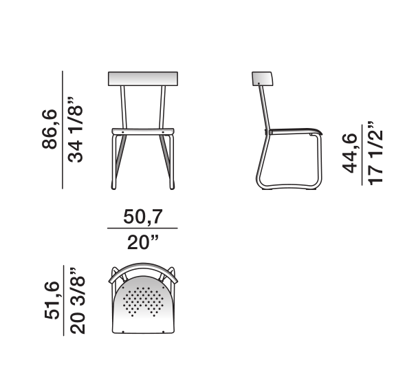 Gio Ponti于1935年為米蘭Largo donegani區的蒙特卡蒂尼大樓做了整體設計,從建筑設計和到家具設計包括桌子、燈具、衣柜。椅子的最初是為1935的米蘭蒙特卡蒂尼大樓而設計。基于Gio Ponti檔案館的原始圖紙加以適當調整為現在的這張椅子。完全由拋光鋁材制成。