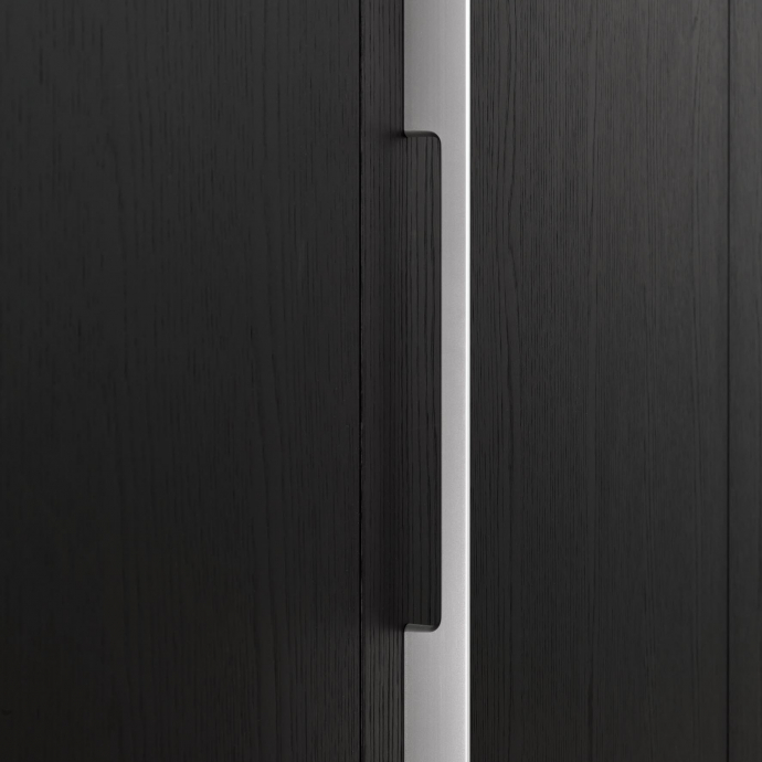 and disappears when necessary. The large doors slide and fold, disappearing into the side compartments