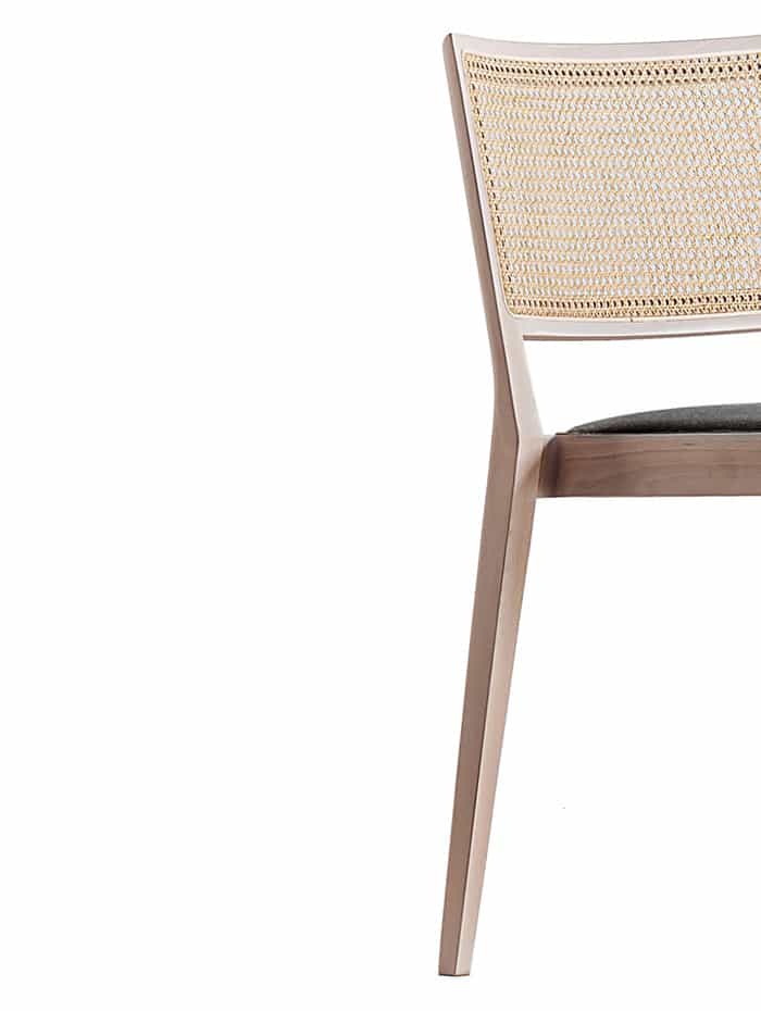 It shares the balanced structure of A Chair in the Forest, but opts for a classic woven rattan back for utmost lightness. A Chair Outside the Cage is made by artisan craftsmen from the Hida-Takayama area in Japan, renowned for centuries for their woodworking skills. The result? A chair made of bleached or charcoal gray beech wood that is light, elegant and easy to move.
