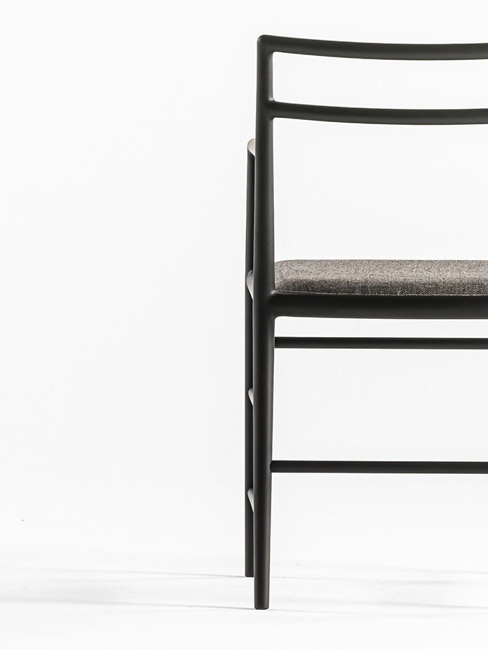 Light and slender yet strong and sturdy. The Sensitive Light Chair is inspired by the architecture of Shinto shrines and temples: the seat and legs form a single structure made of bleached and anthracite gray beech wood that is carefully finished by hand. With a clean, elegant design and discreet presence, it reflects a Japanese aesthetic vision based on traditional oriental woodworking techniques.