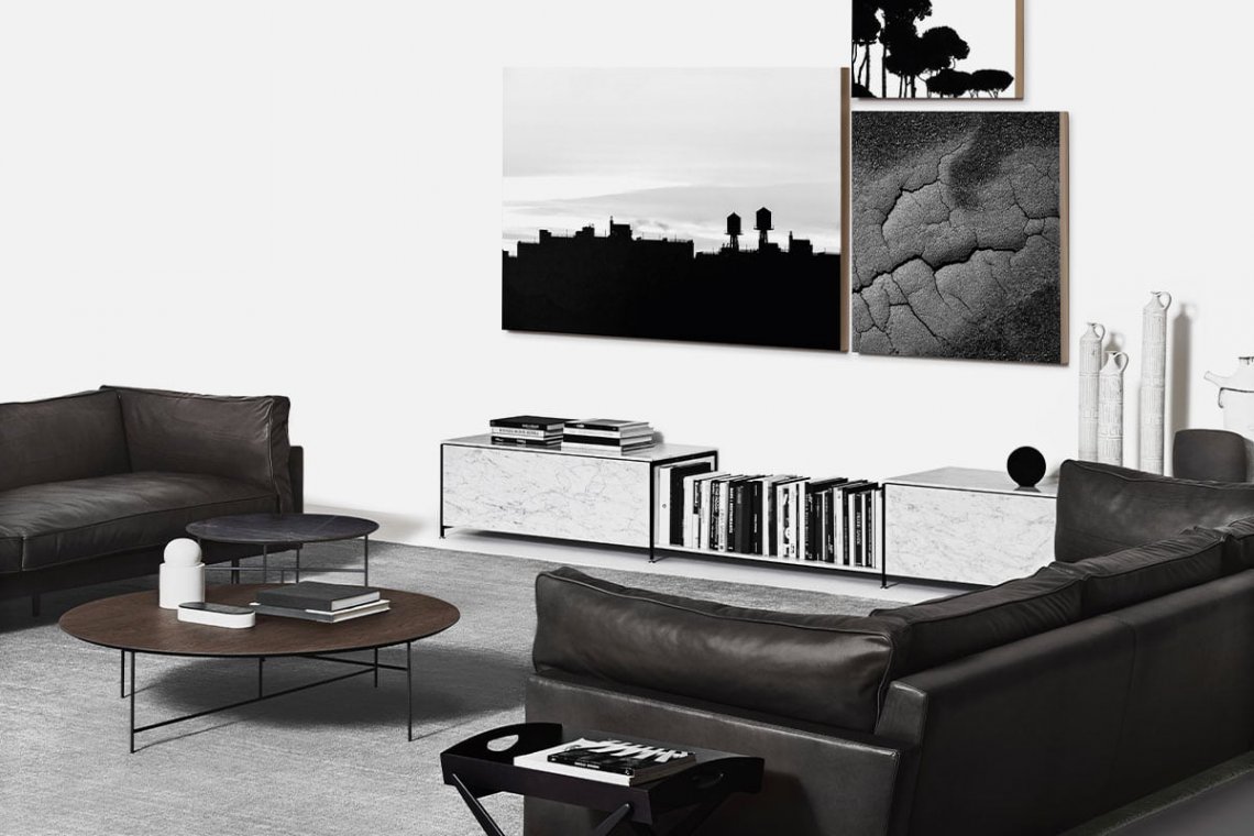 It is versatile in part because it’s functional, in part because it was created in different shapes and heights, and also because the top comes in several finishes: different types of marble, oak and also a “soft touch” nanotechnology treatment with a particularly pleasant feel. Round or square, available in different heights, it completes the corner of the living room dedicated to relaxation or reading.
