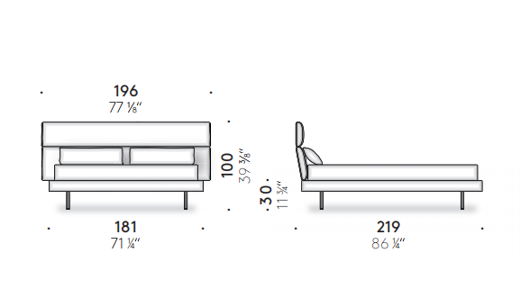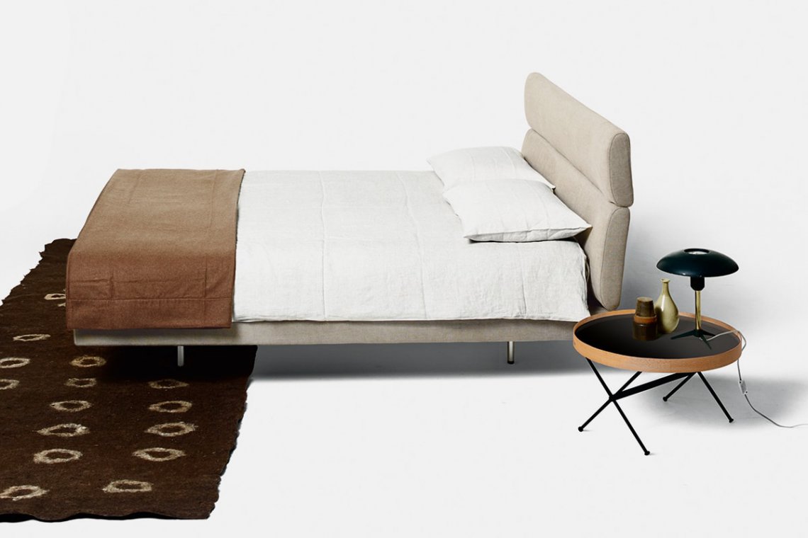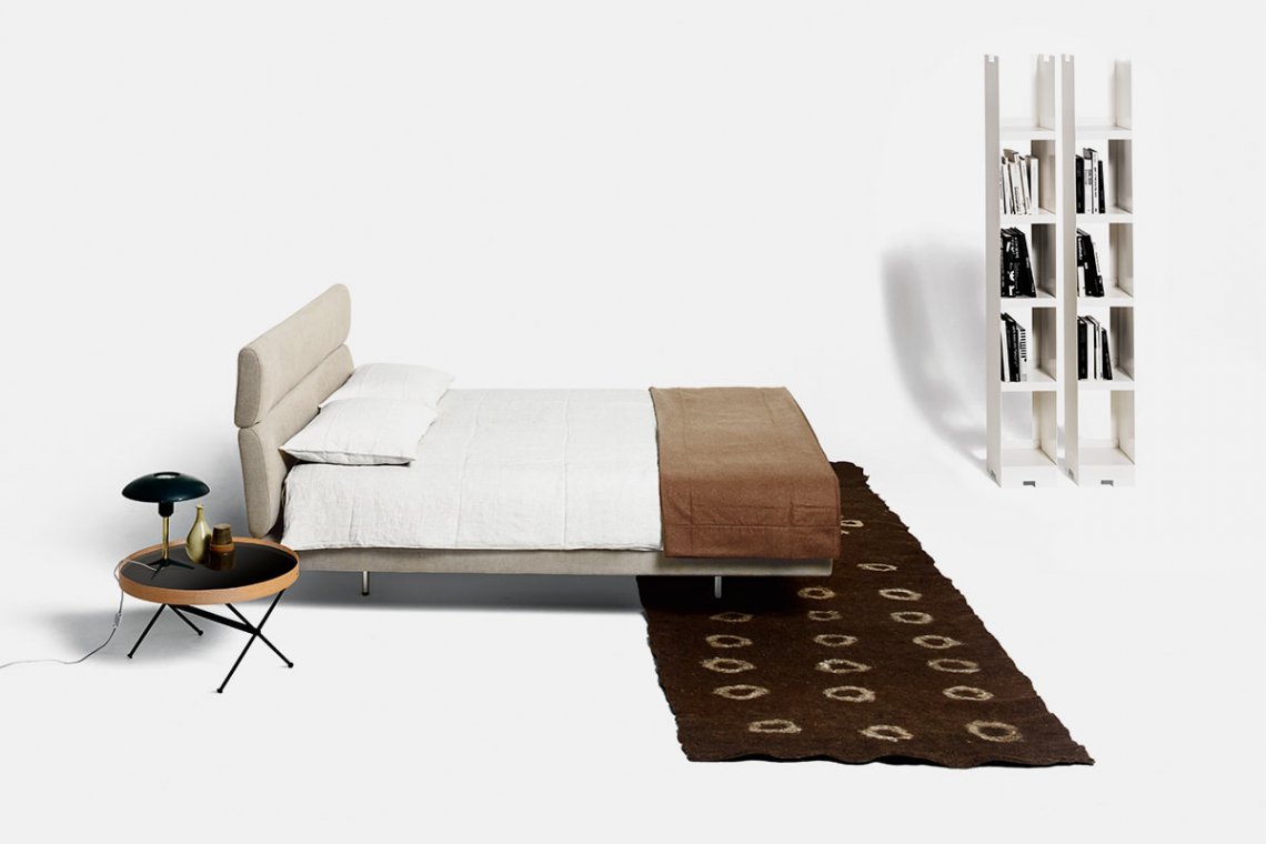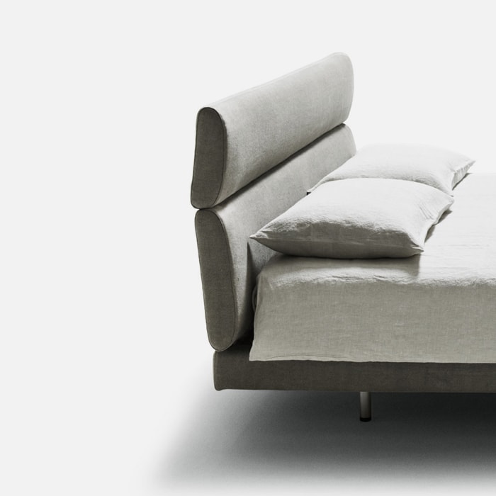 An invitation for rest: the classic design by Vico Magistretti has a distinctive yet well-balanced silhouette created by the padded double bar headboard and the large, comfortable bed base with beech wood slats, both with easily removable covers. Particularly comfortable, it is perfect for reading, relaxing and, of course, sleeping.