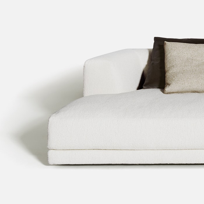 Proportioned, linear and flexible. Alberese Sofa is the latest modular project by Piero Lissoni for a welcoming, personal and contemporary living space. The collection of upholstered furniture has angled armrests for relaxing, reading and spending time together. All the elements of the system — single and corner units but also a chaise longue and pouf — have deep seating and can be used to create different solutions perfect for everyday stories, big and small.