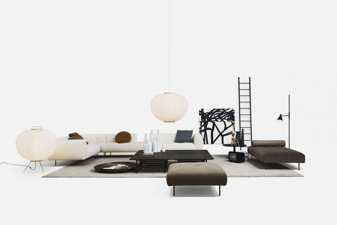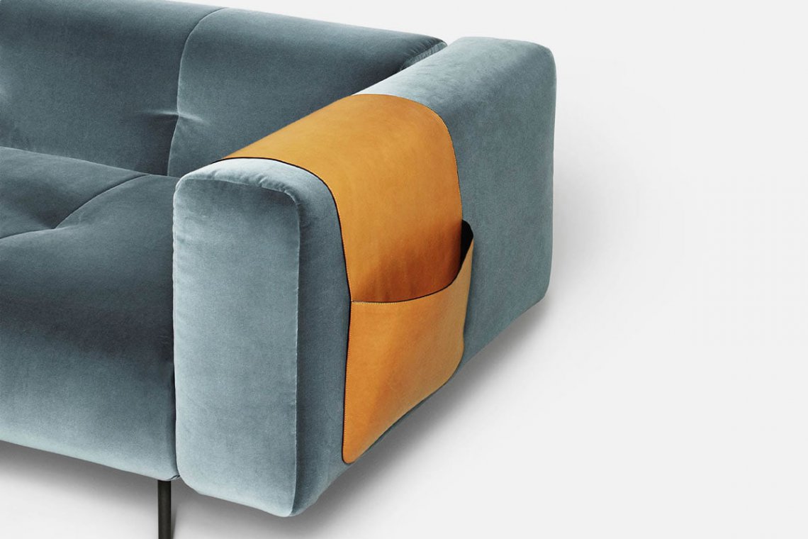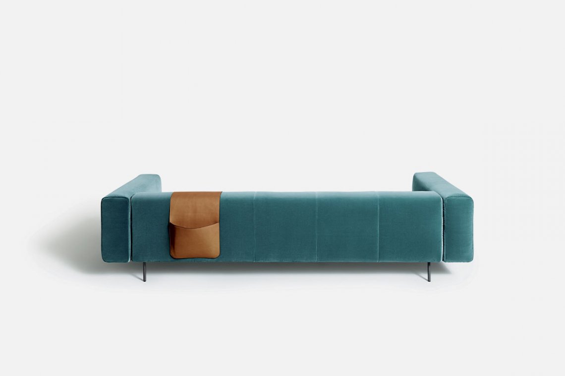 Like the Sicilian mountains after which it is named, Erei, the modular system by Elisa Ossino and a winner of the Archiproducts Design Award, lends itself to multiple compositions, also thanks to the option of inserting wood and leather side tables. The painted steel feet are slender and the compact seating features stitching that is an effective contemporary reinterpretation of the capitonné motif.