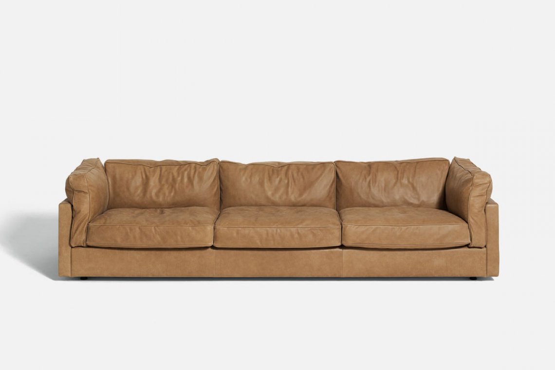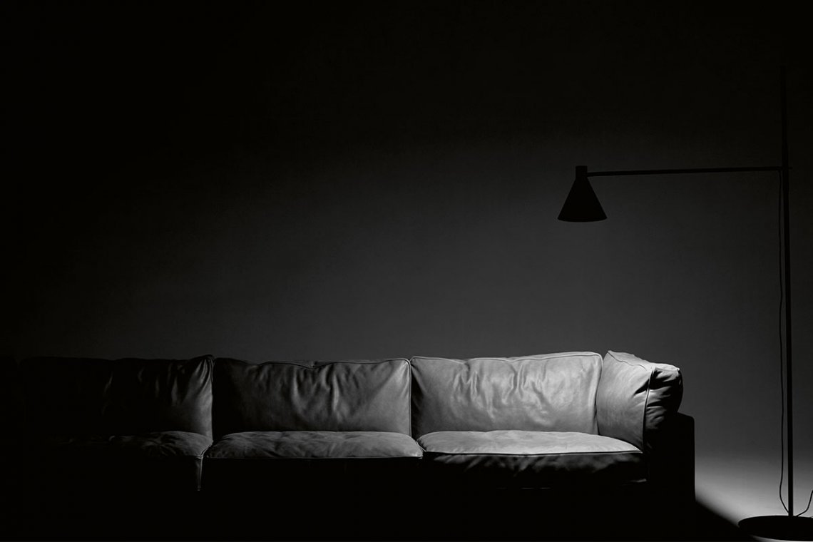 A contemporary classic. The squared lines of the Square collection are completed with the Ground sofa, which is a floor version with a higher base. The ample, cozy seating features goose down cushions that create a sleek yet relaxed look.