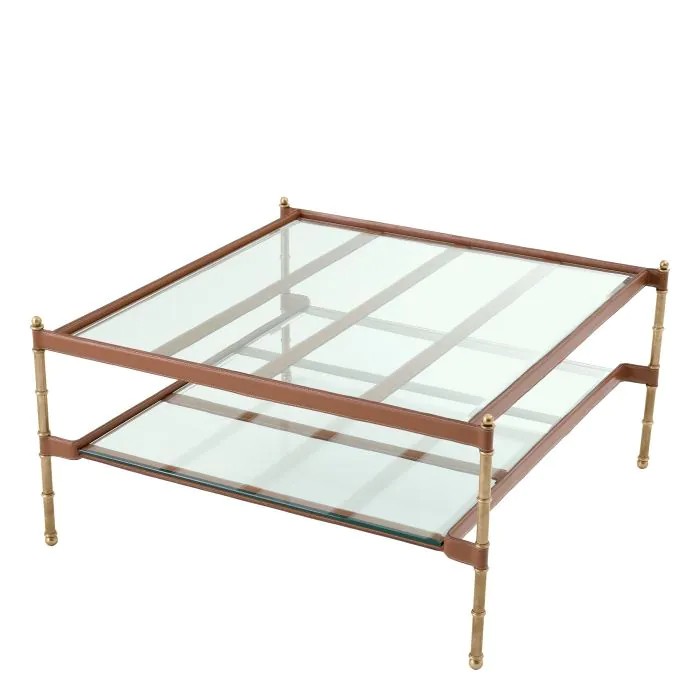Vintage brass finish | tan leather | clear bevelled glass