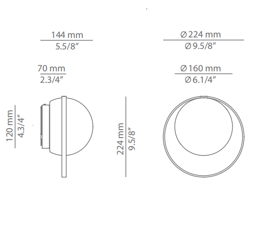 A-3722: Indoor locations, it is made of translucent beige polyethylene and a decorative metal ring. Available in black and satin gold finishes.