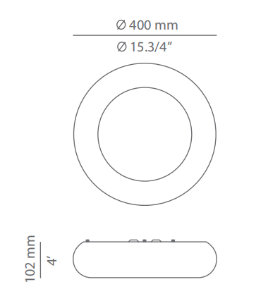Metallic wall lamp with two different diameters. Acrylic diffuser and integrated dimmable LED.