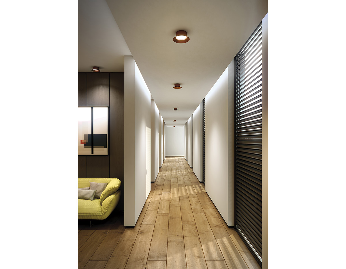 Metallic ceiling lamp or wall lamp with two different diameters. Acrylic diffuser and integrated dimmable LED.