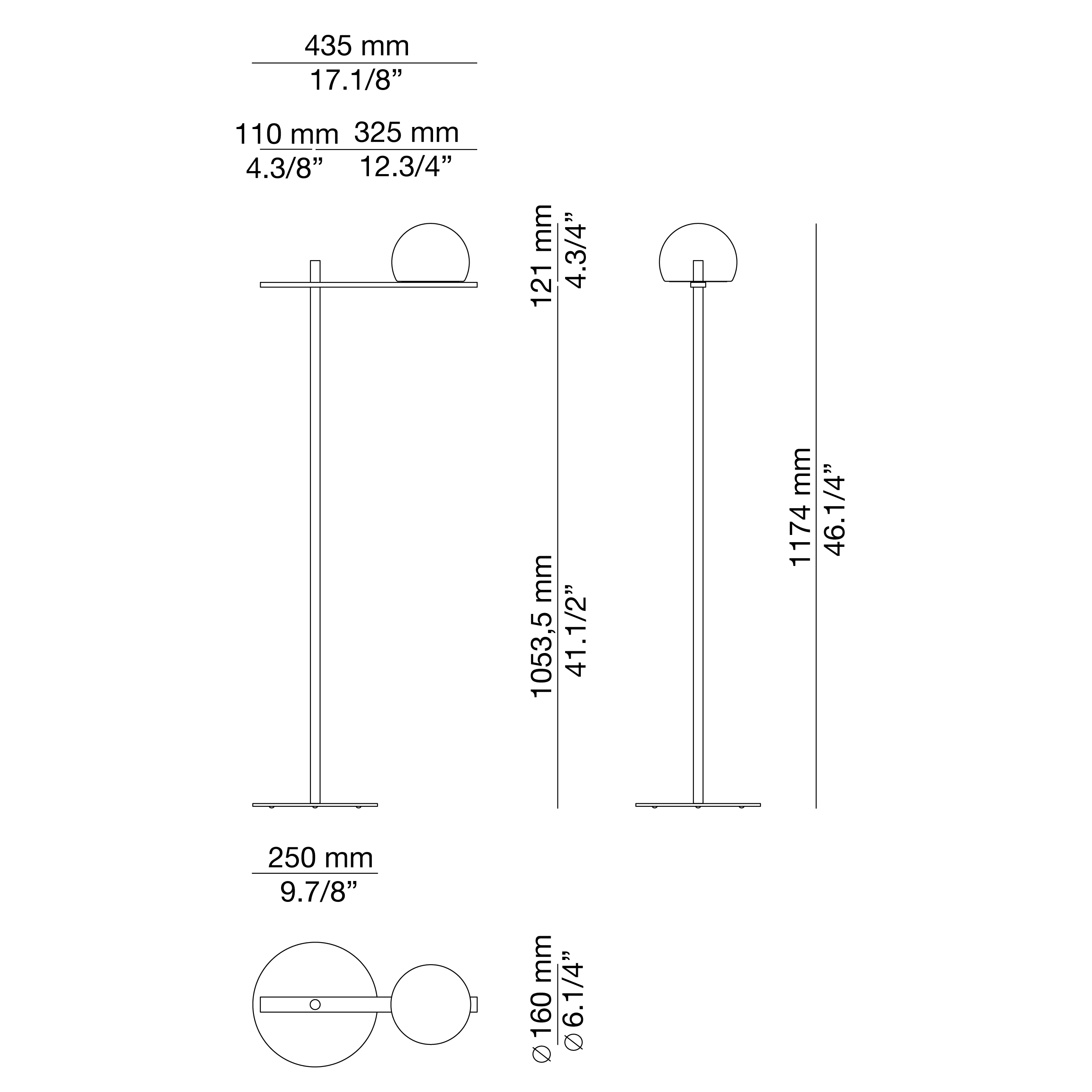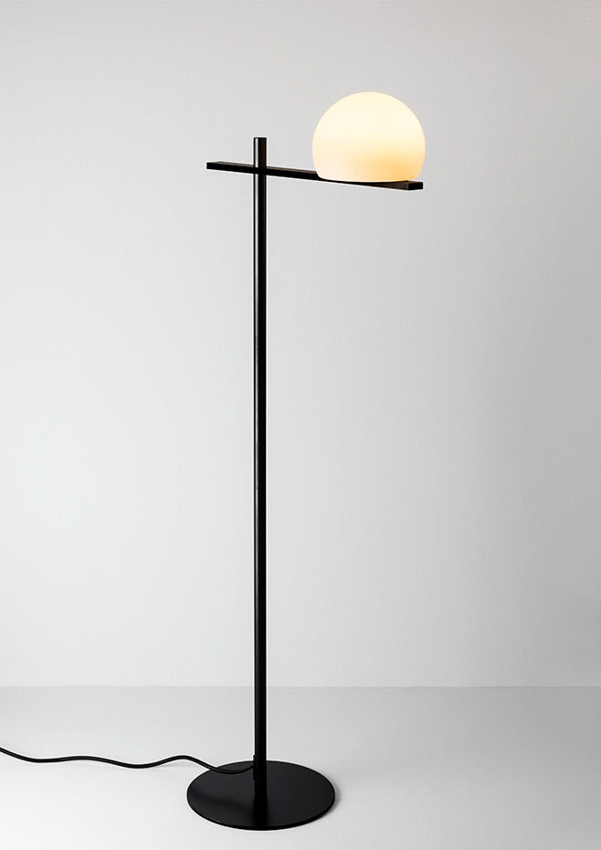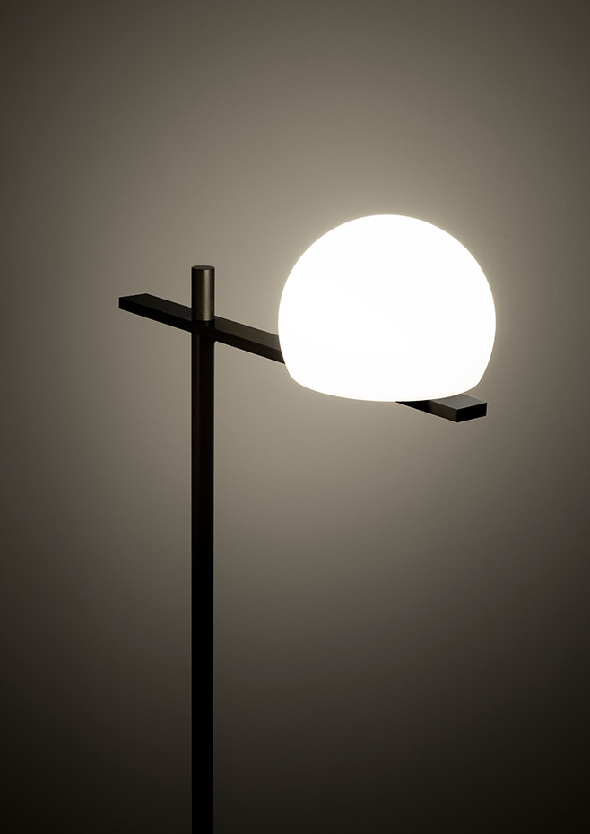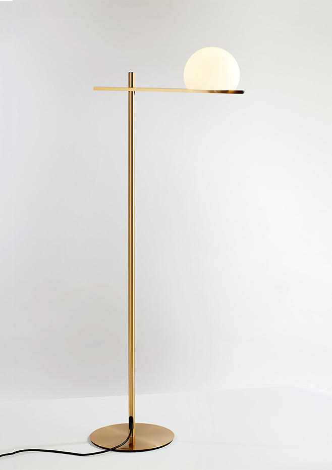 p-3729: Indoor locations, it is made of translucent beige polyethylene and a metal bar behind the shade. Available in black and satin gold finishes.