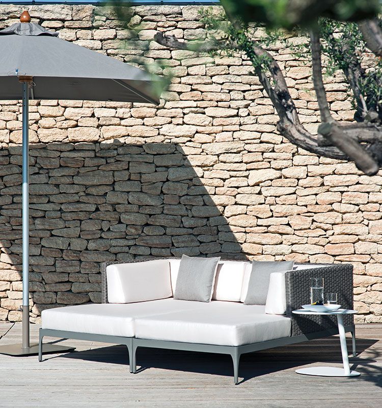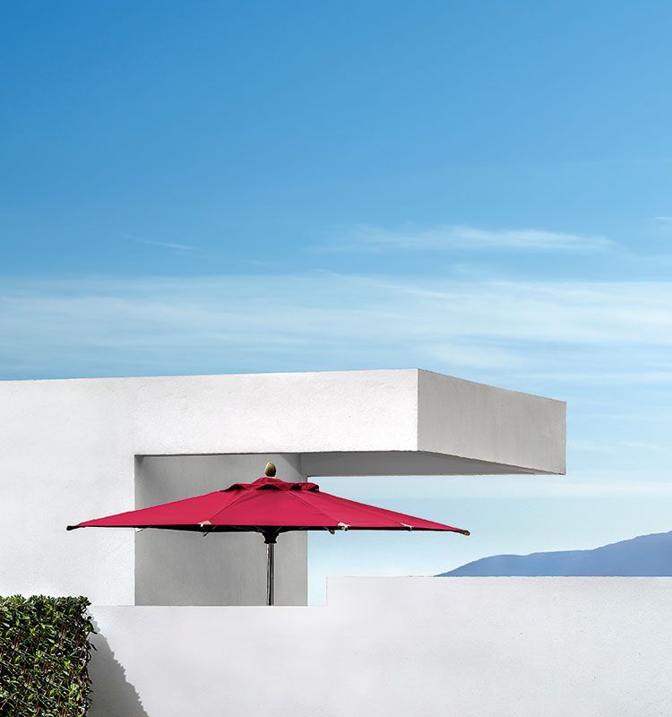 Versatility for every scenario and every need: Free is the line of parasols with solid aluminium frame available with bases of different types and with a multiple choice of colours.
