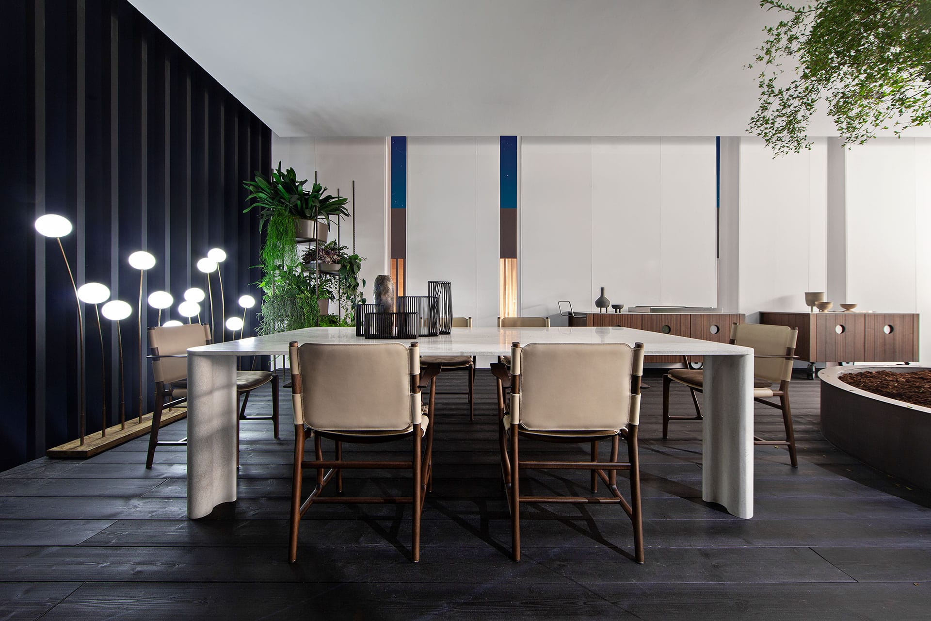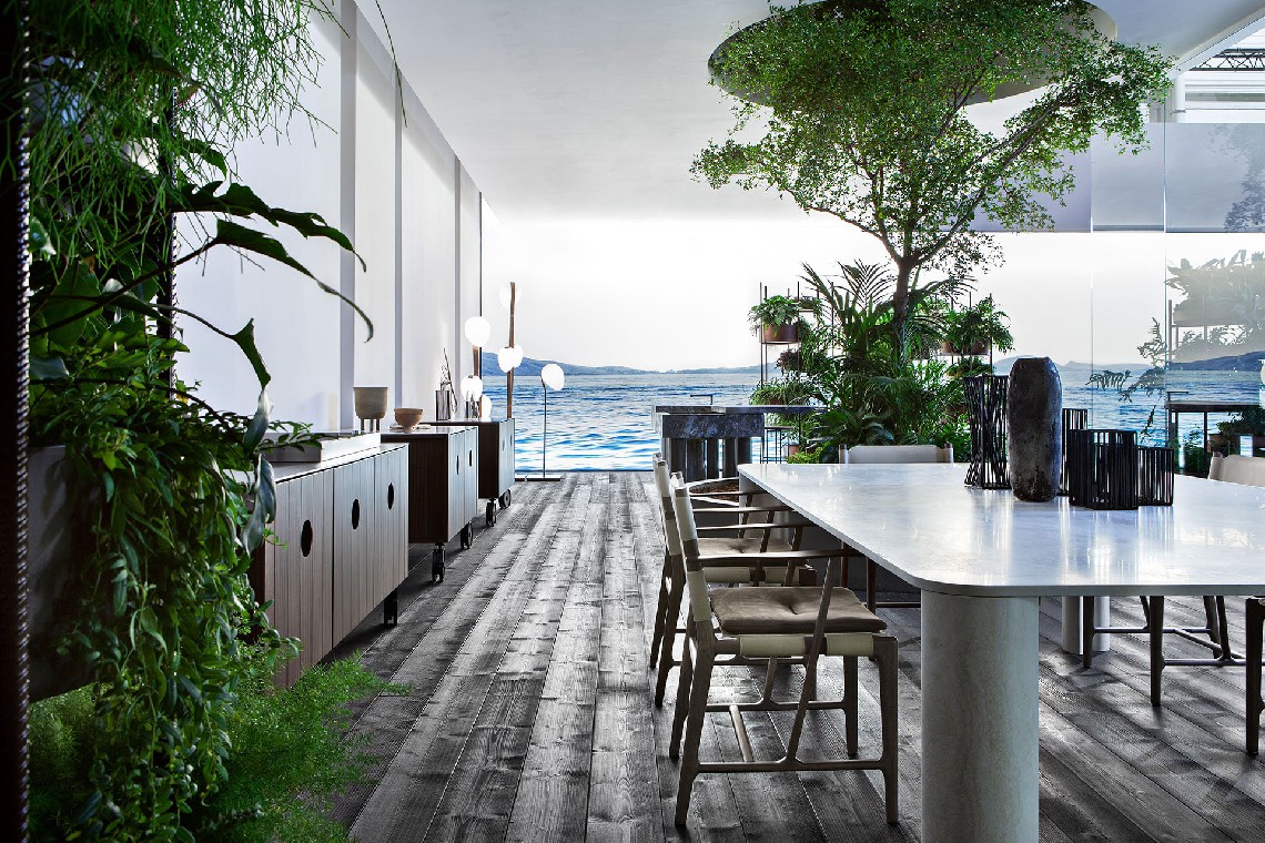 Michelangelo, the main table in the new Exteta collection, is a piece made entirely of marble with extraordinary elegance radiated by the material’s expressive power.