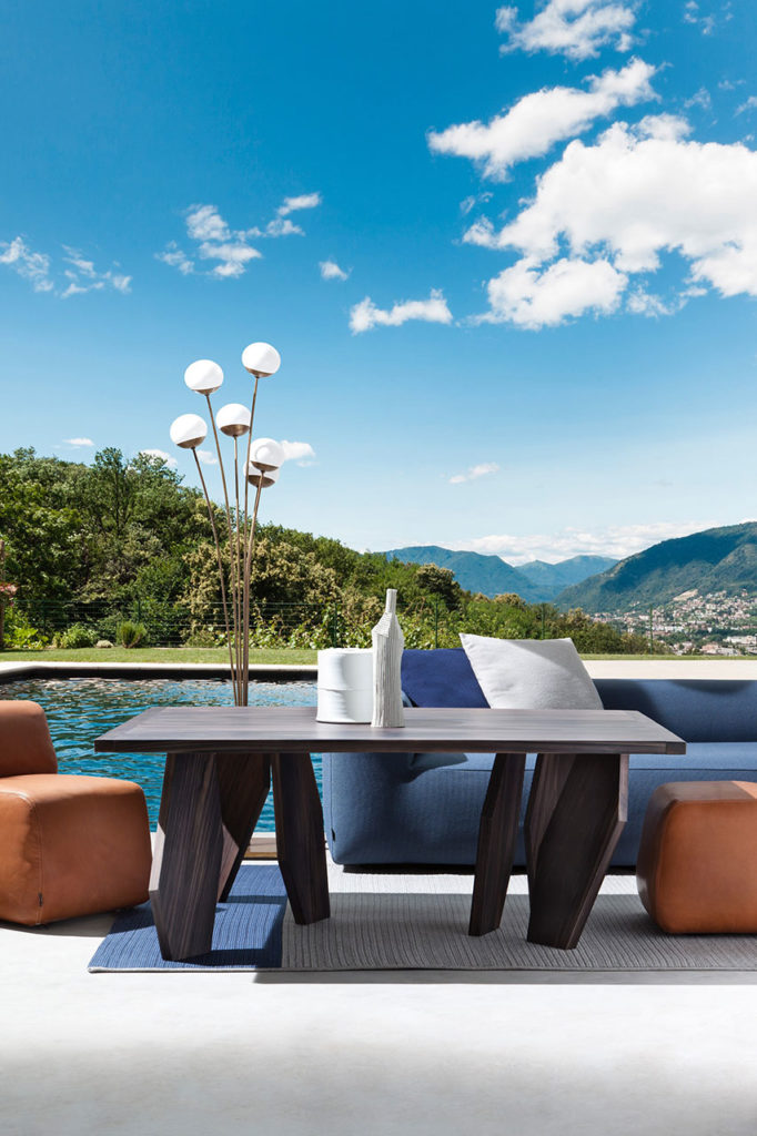 Wood is the protagonist of 10th Joint Lounge Table, the lounge table made entirely of solid Sapelli mahogany or solid Indigo.