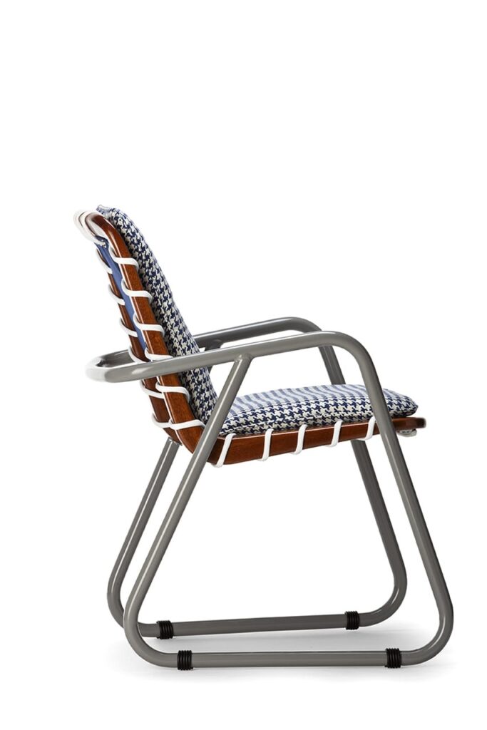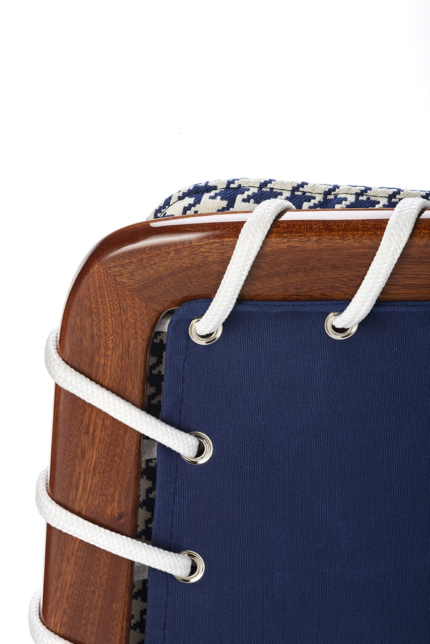 The materials mix and match in an unexpected way in the wrapping features of this chair.