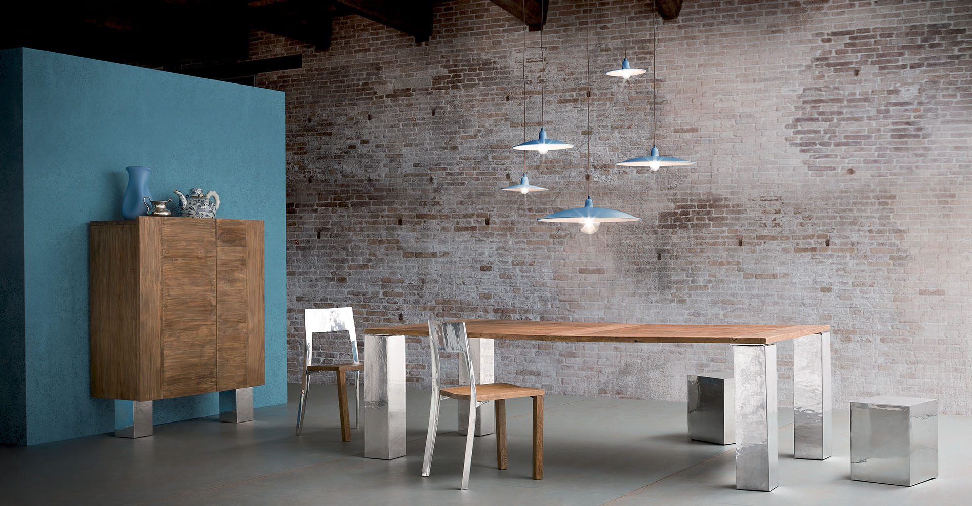 The successful material combination of teak and aluminum casting gives life to the NOA chair. Sober and elegant, composed of a seat and two front legs in solid recycled or silver teak, supported by the back and the rear legs in polished, brushed cast aluminum or in satin or diamond metallic finish, this sophisticated chair will find place in the most diverse environments.