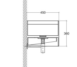 Mobile bagno a parete con cassetto, larghezza da 60cm a 160cm e altezza 36cm Lavabo a parete modello Minimum con piano da appoggio integrato sul lato sinistro, larghezza 80cm, profondità 45cm e altezza 36cm. Lavabo disponibile in cemento e marmo con copripiletta nella stessa finitura. Mobile con lavorazioni a 45° su frontali e corpo. I cassetti sono completamente estraibili e sono disponibili con maniglie opzionali a gola o premi apri.