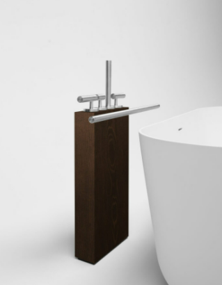 Porta salviette a parete in acciaio inox dimensioni L60 x P10,4cm. Mensola decentrata in massello di Noce o Rovere o Cristalplant Bio Active con dosatore sapone e bicchiere in acciaio inox. Disponibile in versione destra o sinistra.
