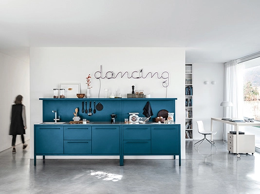 Le cucine Frame sono proposte a 2 o 3 moduli, con top in acciaio Barazza o in Fenix NTM. L’acciaio – in finitura Vintage o satinata da 4 mm – è abbinabile con tutte le finiture Fantin, mentre i top in Fenix NTM sono proposti con telai nelle finiture Ultra-matt perché esattamente corrispondenti per colore, opacità e morbidezza al tatto. è così possibile ottenere cucine monocromatiche dalle solide strutture in metallo Fantin e con top resistenti e ripristinabili.