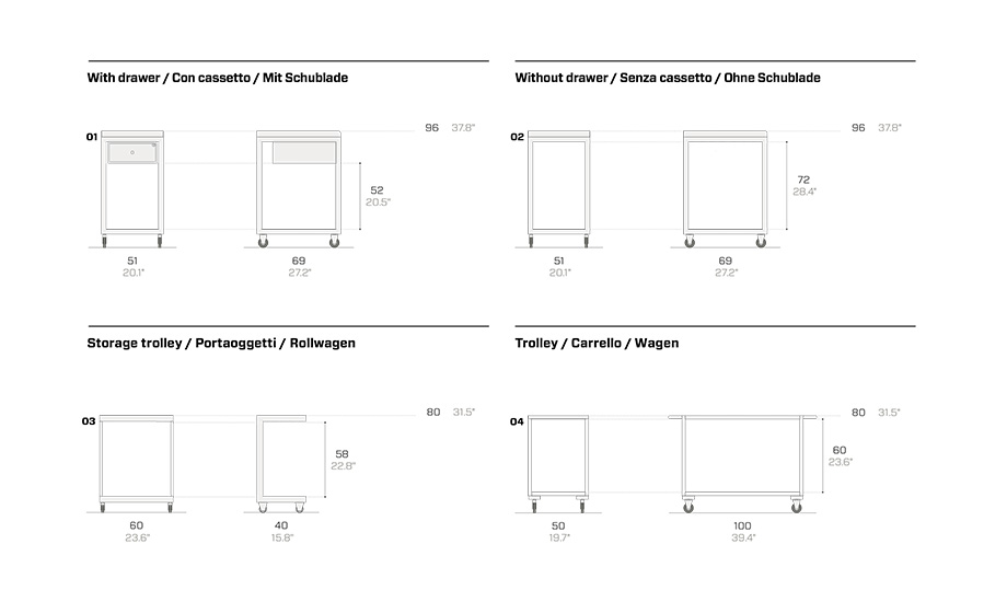 I carrelli Run sono la soluzione ideale per le lavorazioni in movimento. Con una solida struttura in tubolare e ruote piroettanti correttamente selezionate, non temono il trasporto di qualsiasi carico.